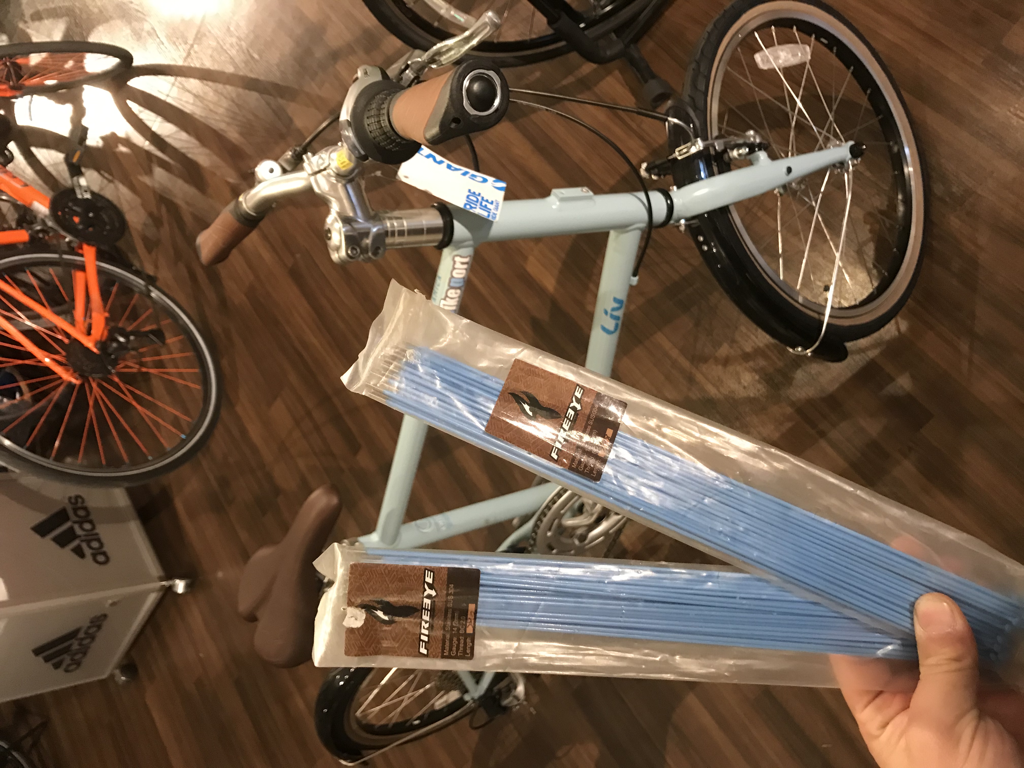 通常はMTBなどに使用するFIREEYEのスポークを用いて施工することに。