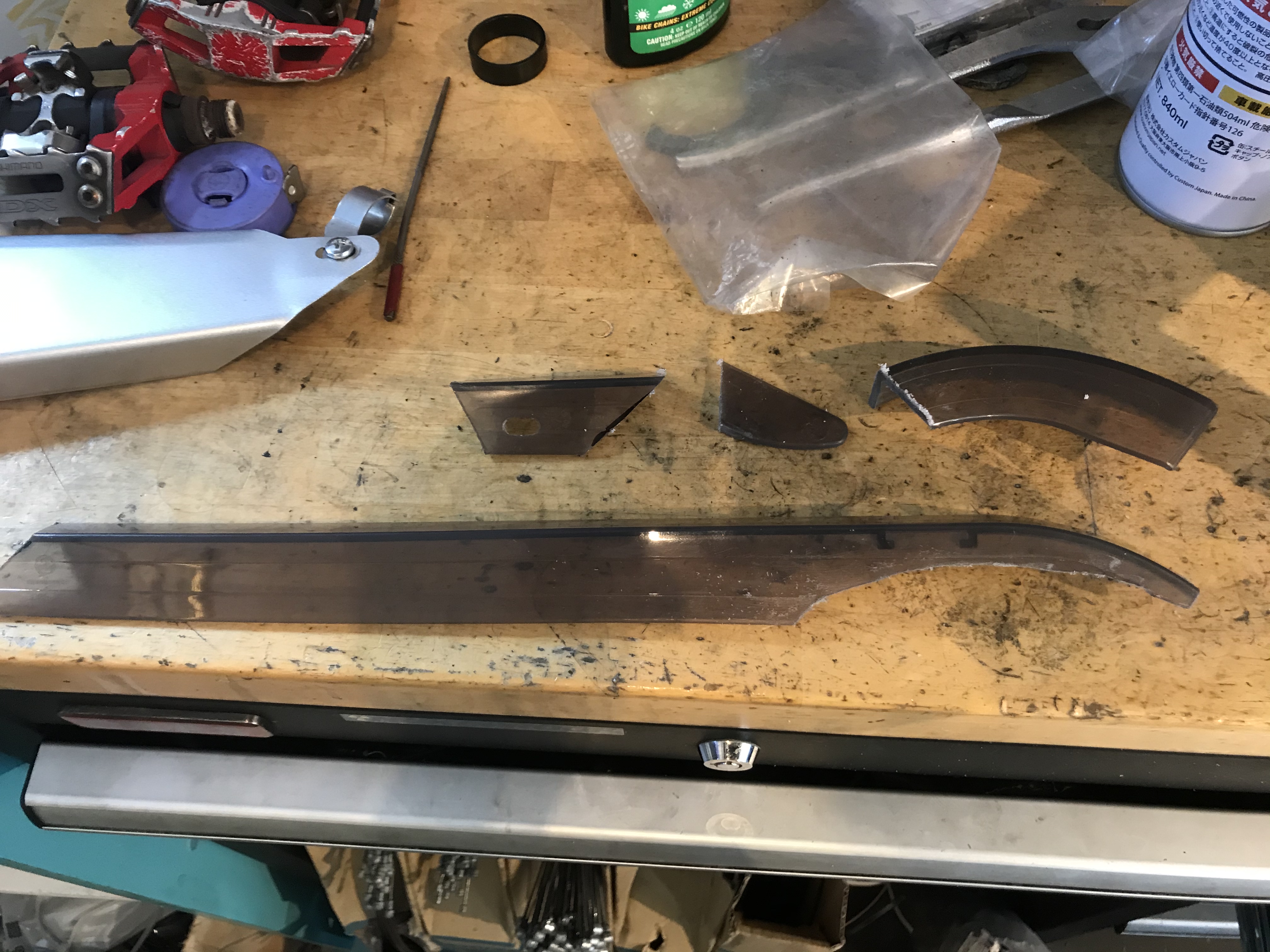 そして多くの年月を費やすかと思いましたが、30分で作成しました。AMICA専用チェーンカバー。BADBOY用のチェーンカバーを切削工具で作成。