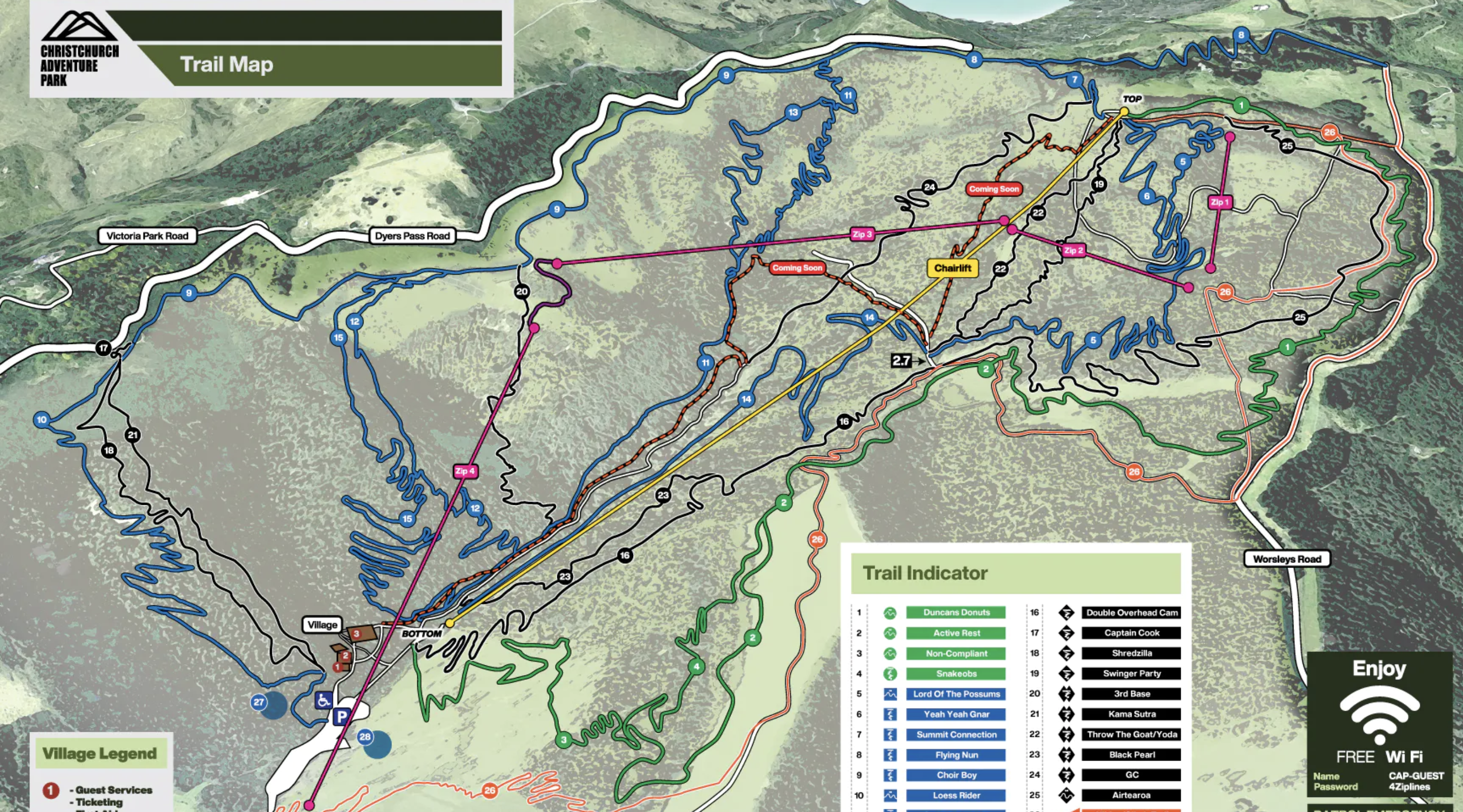 実はこのクライストチャーチバイクパークの隣には”ビクトリアパーク”というフリーのトレイルが広がっており、もちろん自走で上ることも可能ですが、クライストチャーチパークリフトを利用してビクトリアパークにアクセスするのがオススメ。