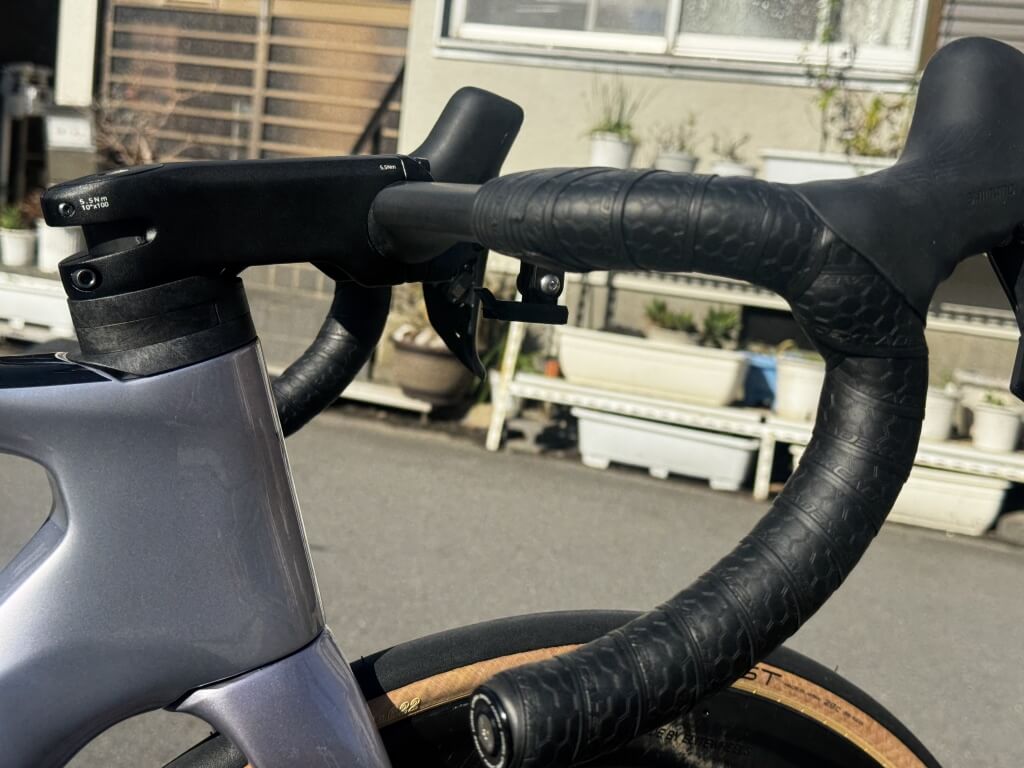 最近人気のCADEX Integrated handlebar も大きく金額が変わるわけではないので最初から選択する方も最近は多いですが、ステムやハンドルを変更できたりハンドルをシャクってみたりすることができるのは大きい強みですね。