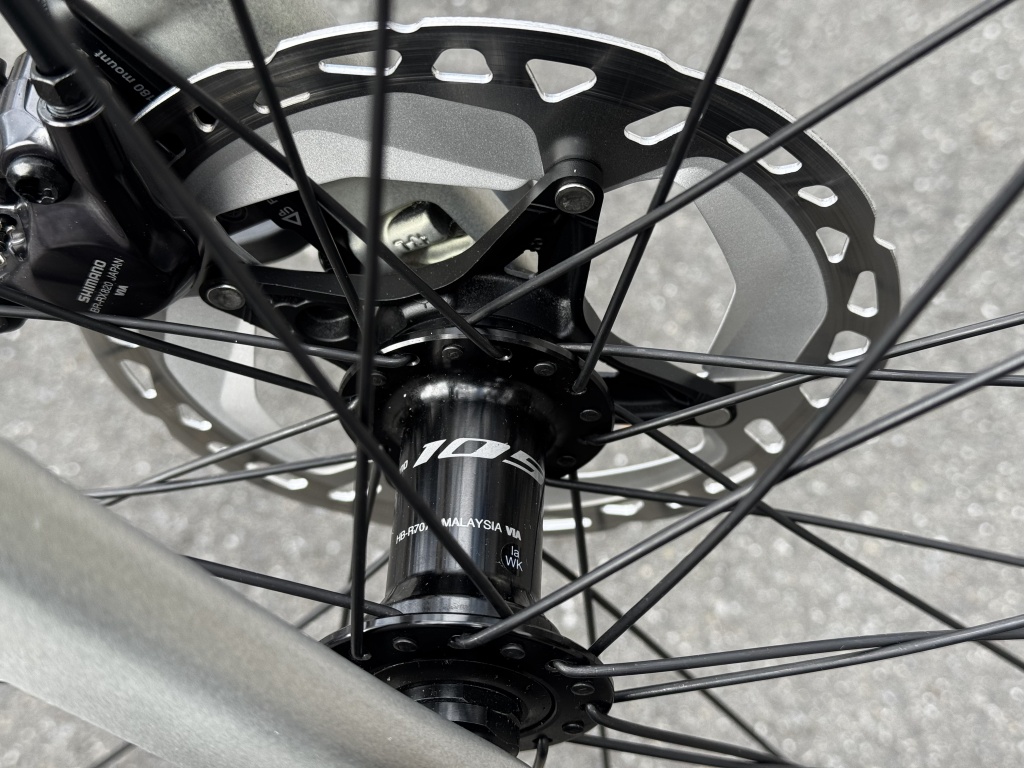 このハブの中にセンサーとチップ、発電機とバッテリーが組み込まれています。めちゃくちゃハイテク。