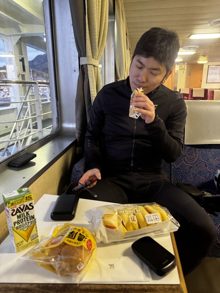 フェリーに乗っている時間は40分でした。補給しながらゆったりできます。