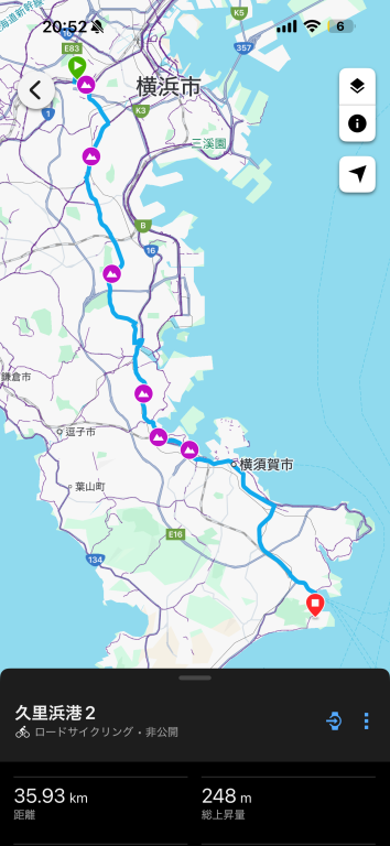 私は横浜から久里浜のフェリー乗り場まで自走していきます。約36kmの道のり。