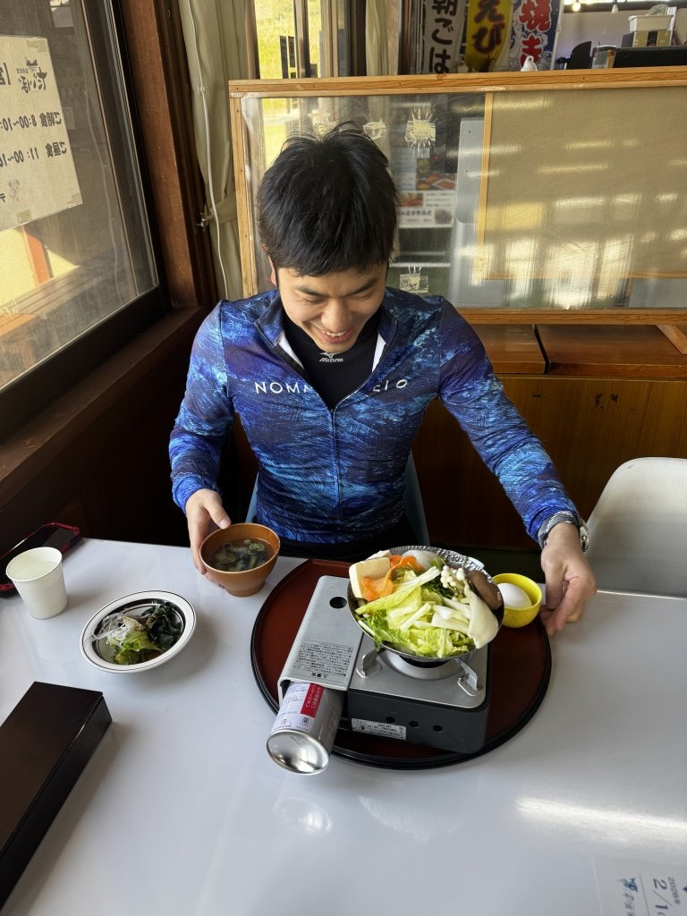 寒さも相まって2人ともハンガーノック気味になっていました。(3月くらいに走ると気持ちいいかもです。)