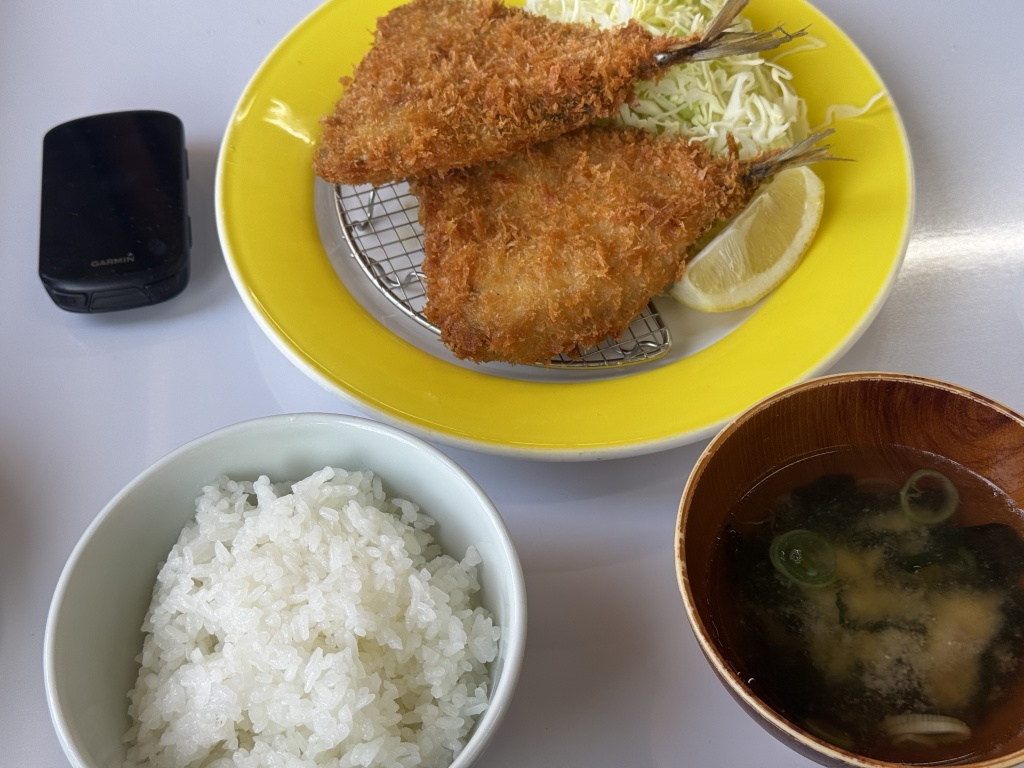 アジフライ定食。1600円。(ご飯味噌汁そのほかサラダなどもおかわり自由)
