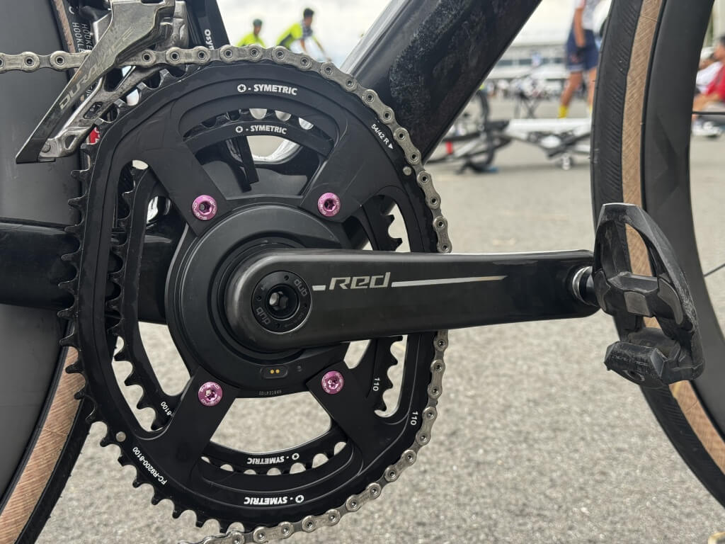 ドデカチェーンリングのボルトがピンク色に変わっていました。そういえば不安だったチェーン落ちもなく走れていましたね。