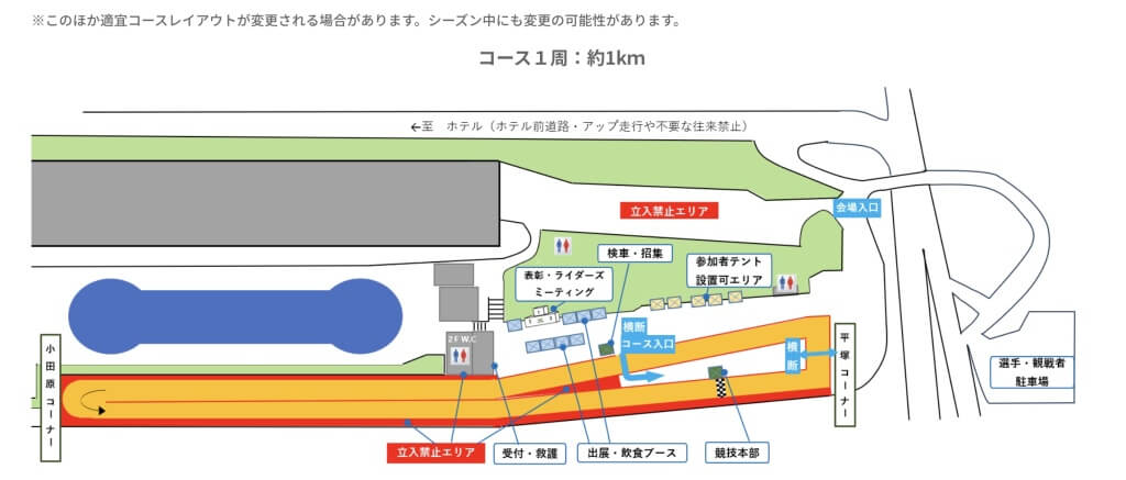 1周約1km。シケインがあったりなかったりしますが、落車が頻発したらしく、今回はシケインなしのシンプルコースになっていました。