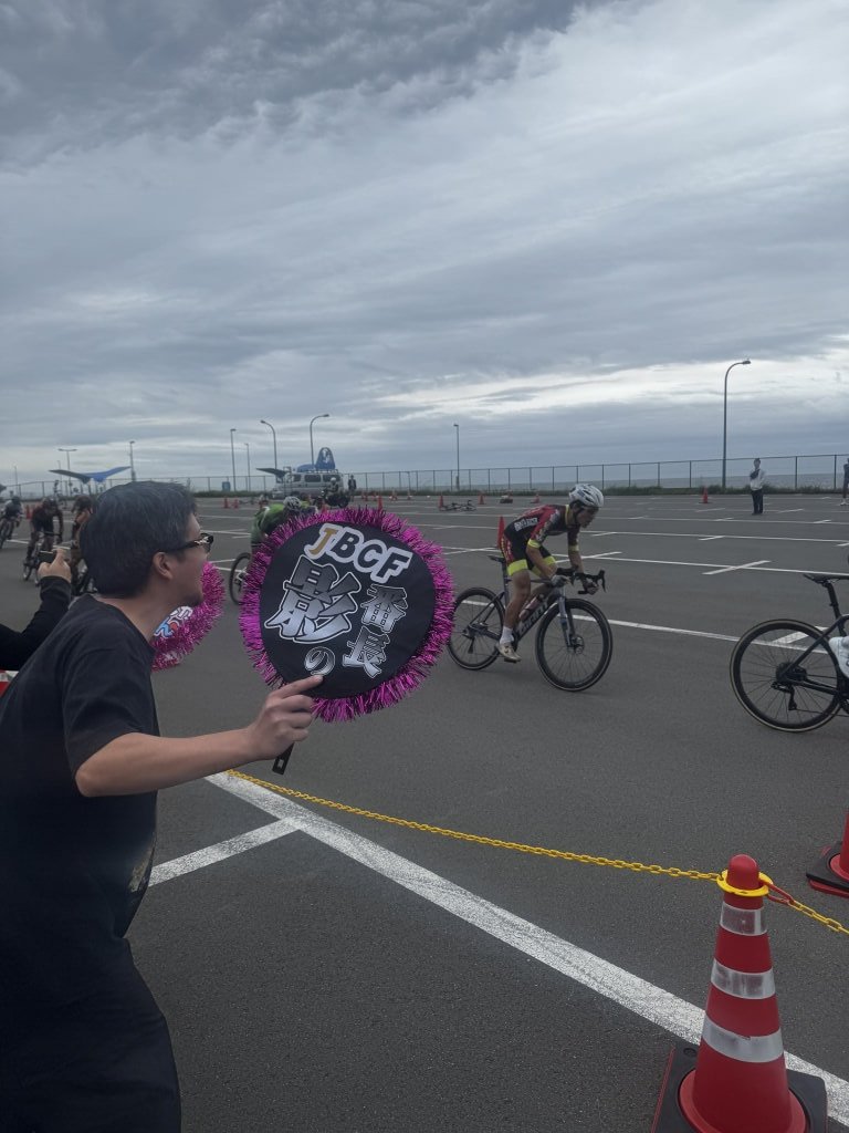 みんなで応援します。コーナーを抜ける速度域が全然違う、、、めちゃくちゃ速い、、、。平均速度も10km/hくらい違ってましたね。