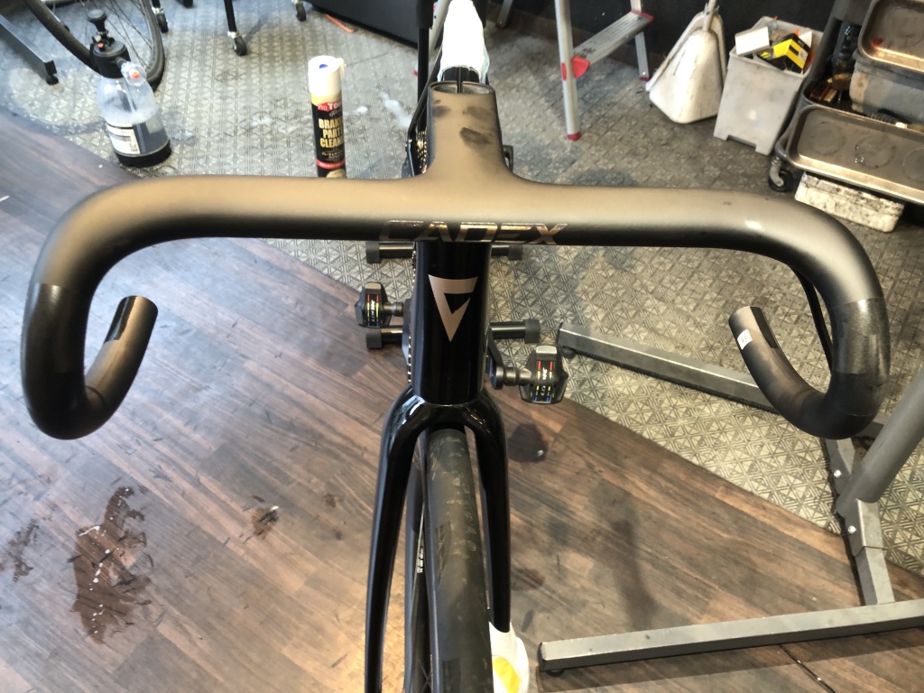 手元をもう少しコンパクトにしたいということで、CADEXの一体型ハンドルバー、Race Integrated Handlebarにカスタマイズさせていただきました。