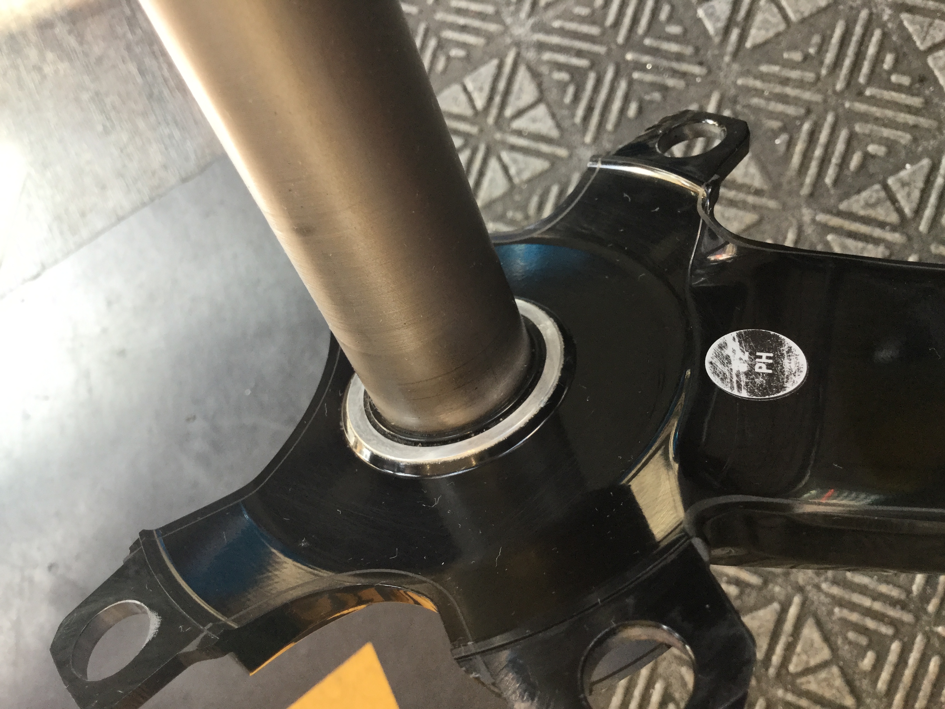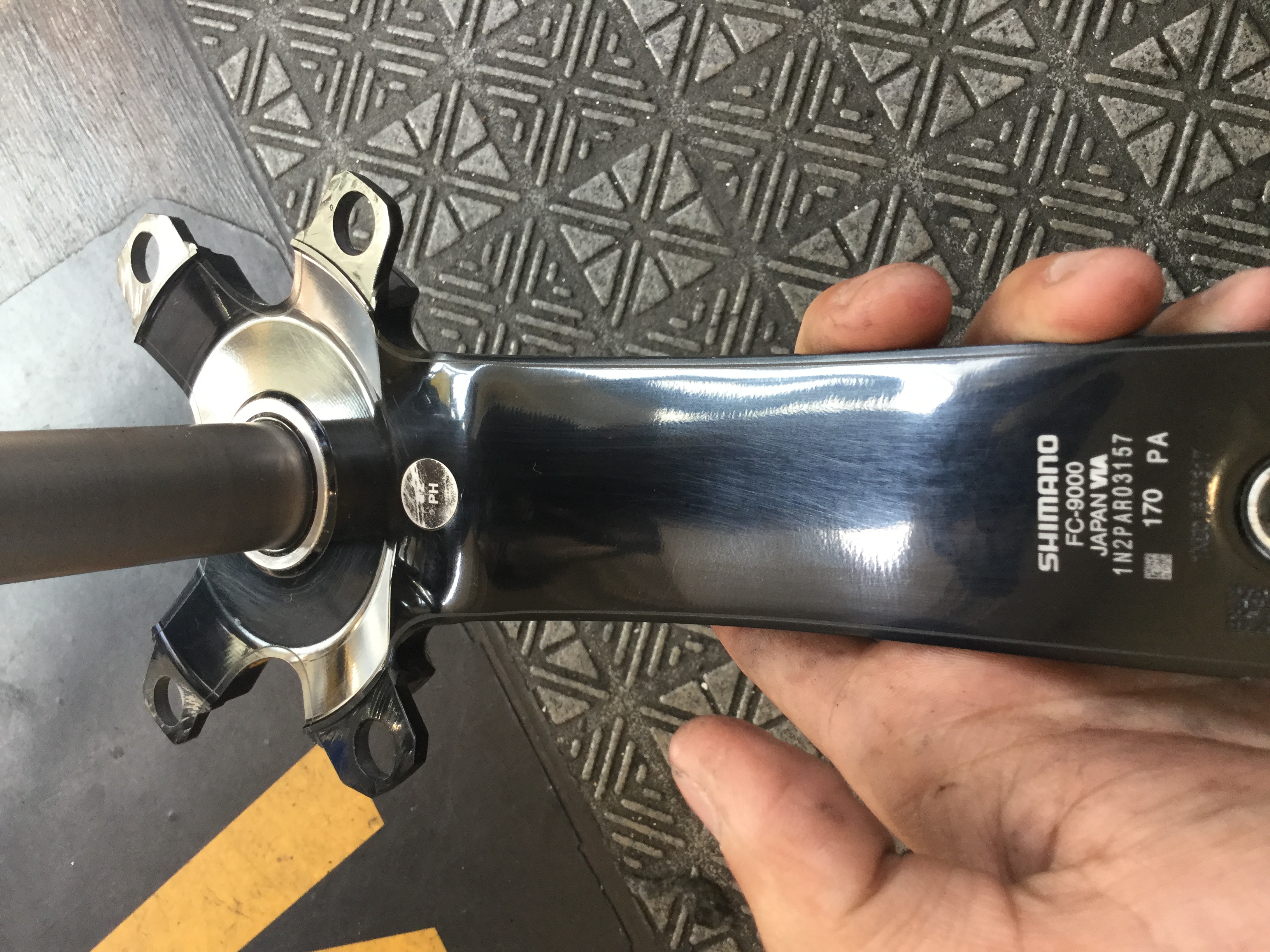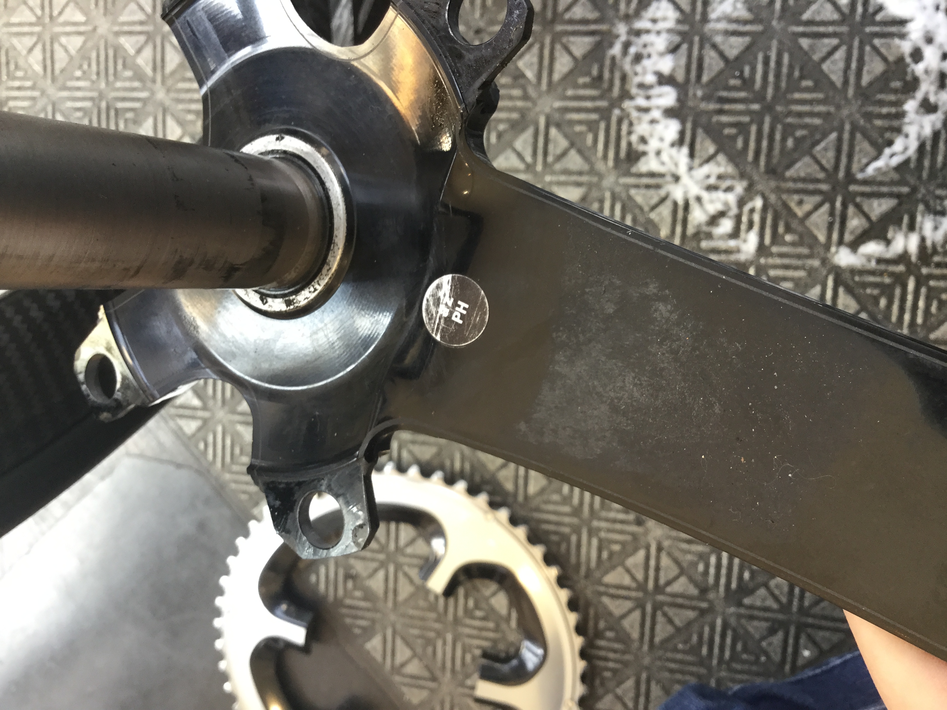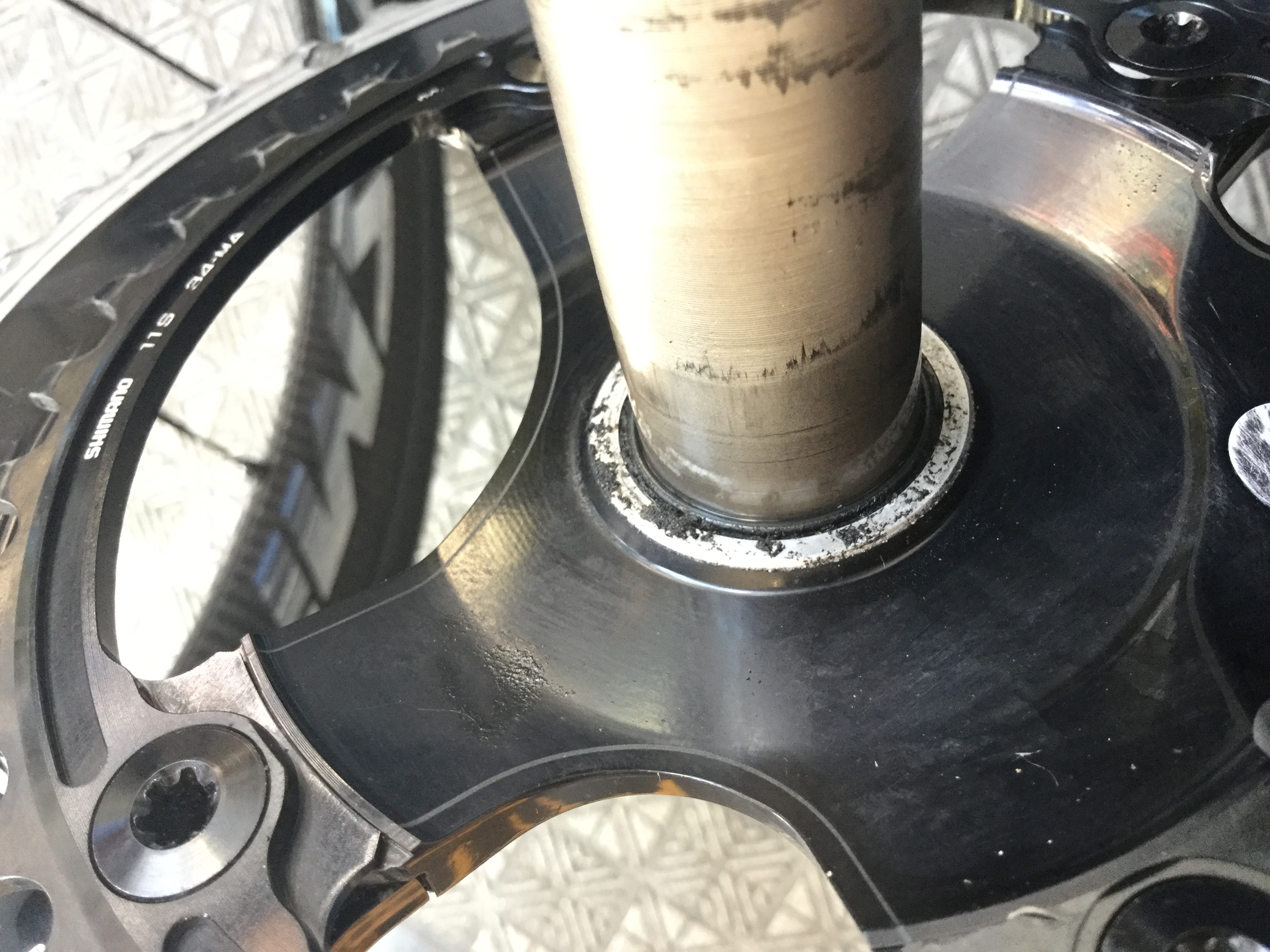 クランクのBBと接している箇所には油と混ざった砂ともホコリともとれない汚れが沈着していました。
