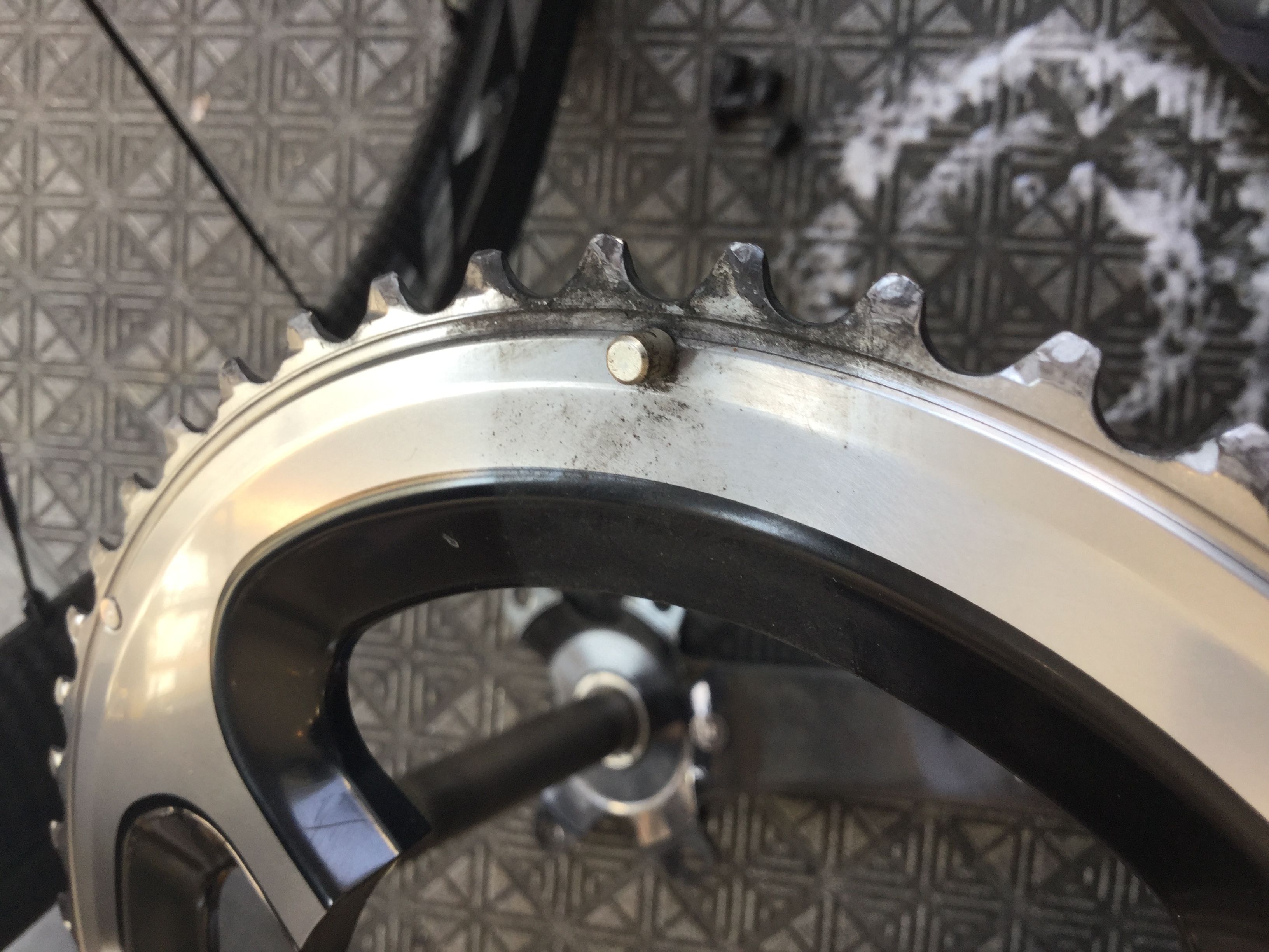 さらにチェーンリングも外し、普段だと見落としがち(と言うか物理的に届きにくい)クランクアームの裏側にこびりついた汚れも落とします。