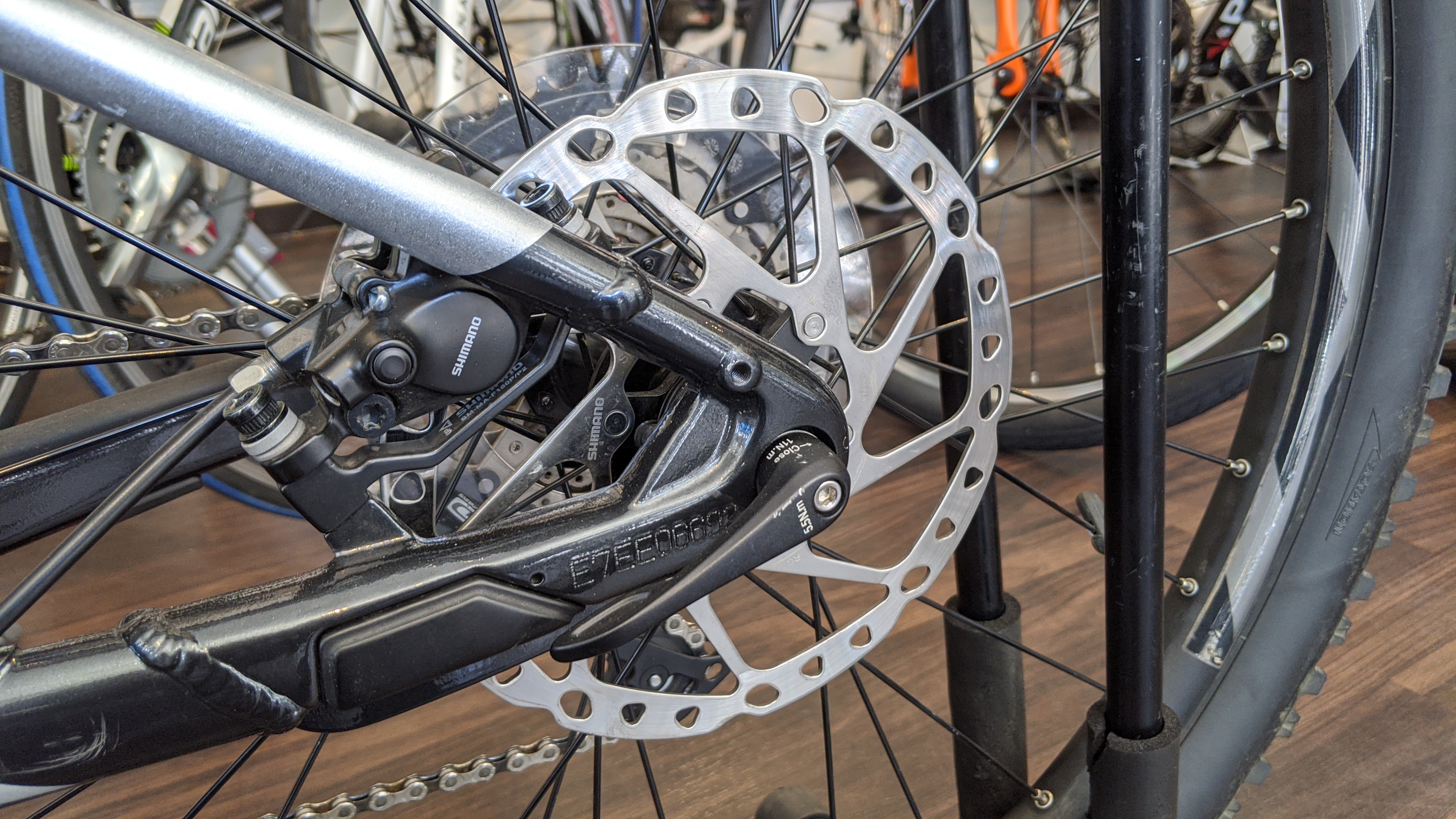 ブレーキには前後ともSHIMANO製油圧ブレーキに180㎜ローターを採用に確実で安心の制動力を確保しています!