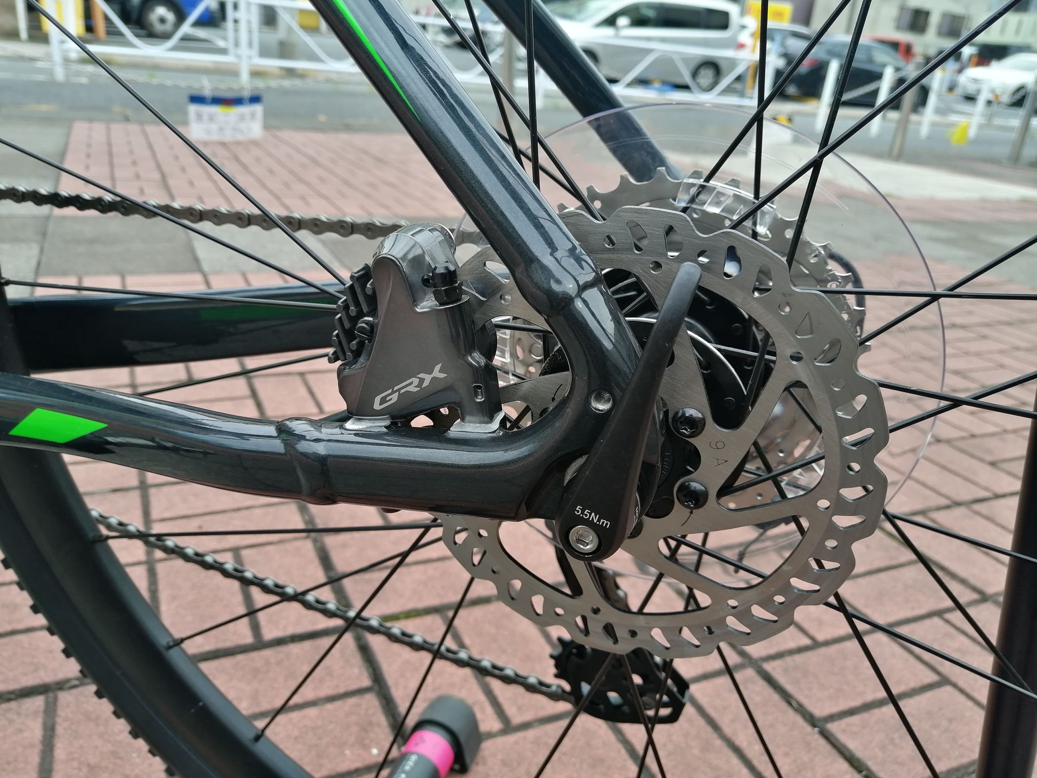 色々メリットはございますが、GRXをグラベル系ロードで選択する一番の理由は泥はけの良いということです。そしてチェーンリングも専用規格だけあって見た目がとても格好良いですよね!!