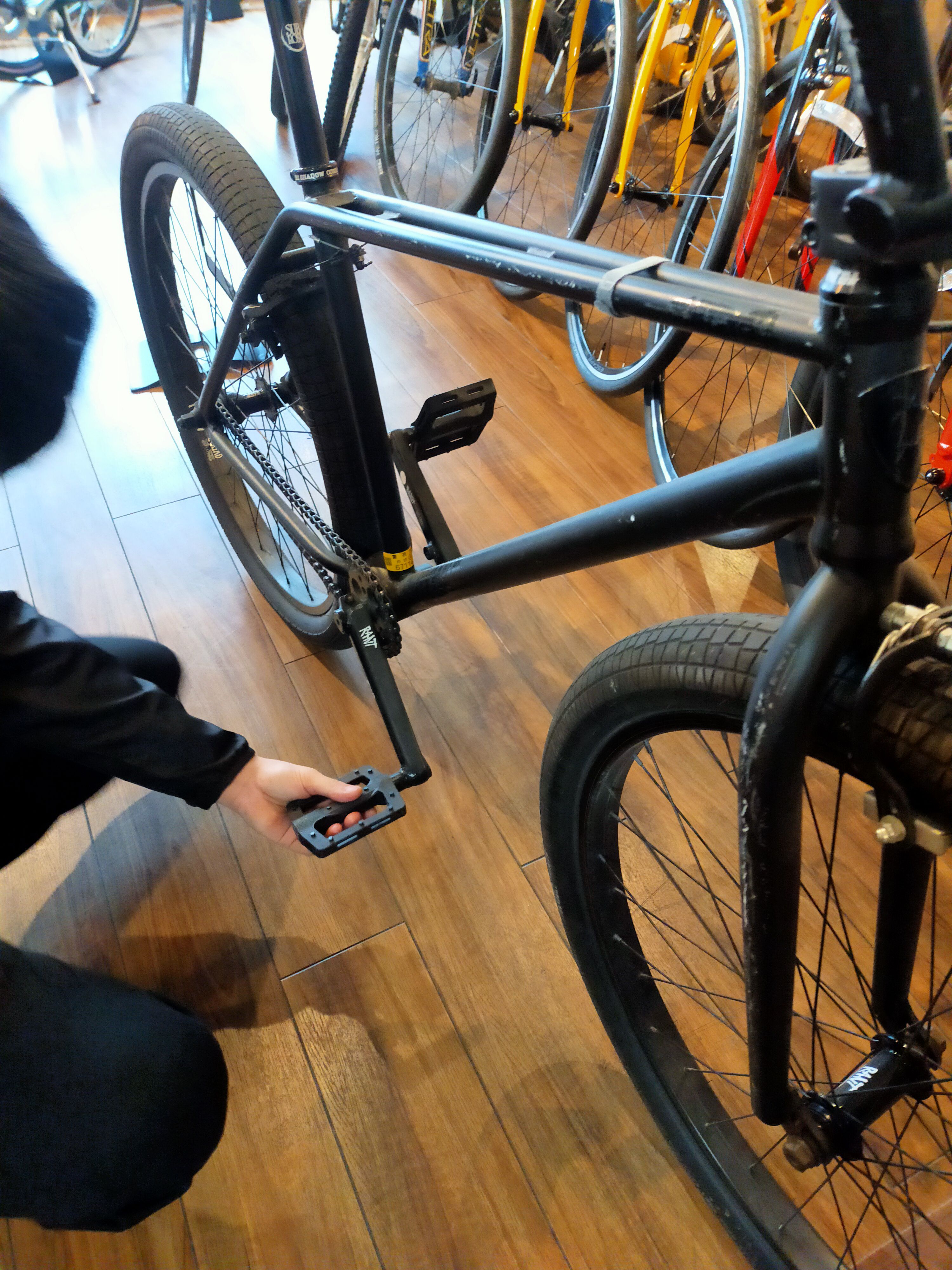 新宿店は土地柄なのか、外国人のお客様が多数いらっしゃいまして、このモデルも右ブレーキと左ブレーキが日本仕様とは逆です。