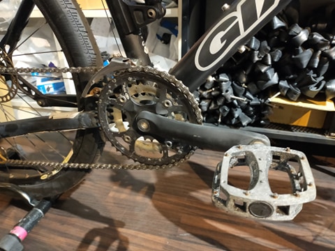 チェーンリングはそこそこ使用感があったものの、まだまだ使えそうだったためそのまま。クランクは…懐かしいですね。笑