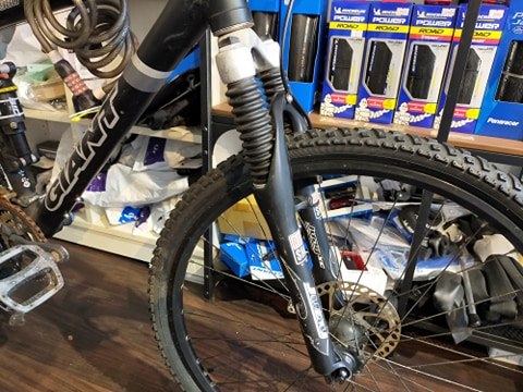 フロントサスペンションは一度エア抜きしてからある程度分解しアッパーチューブのクリーニング清掃を施しました。状態はそこまで悪くは無かったためエアーを補填したら復活!