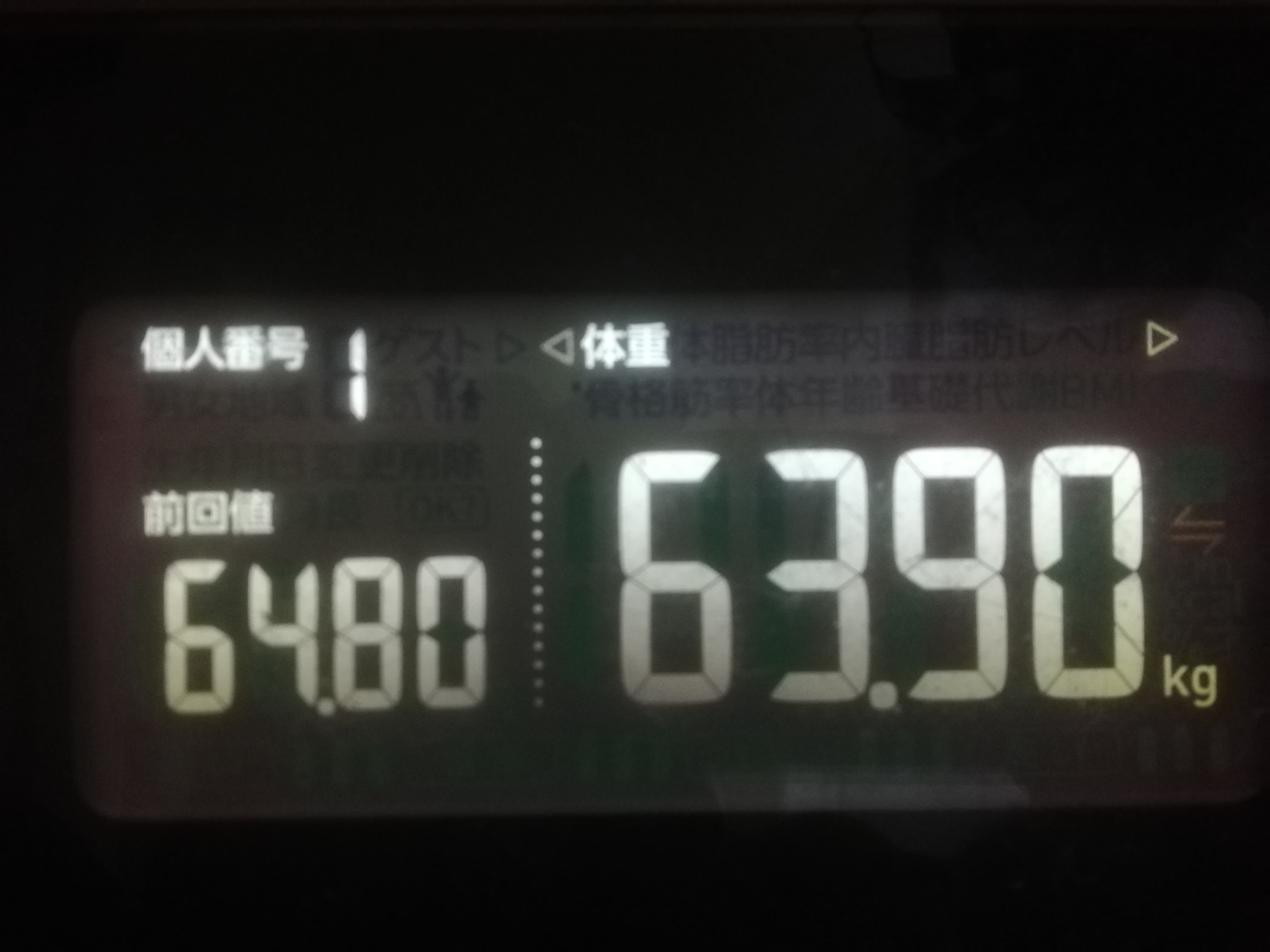 2月1日(土) 体重: 63.90kg