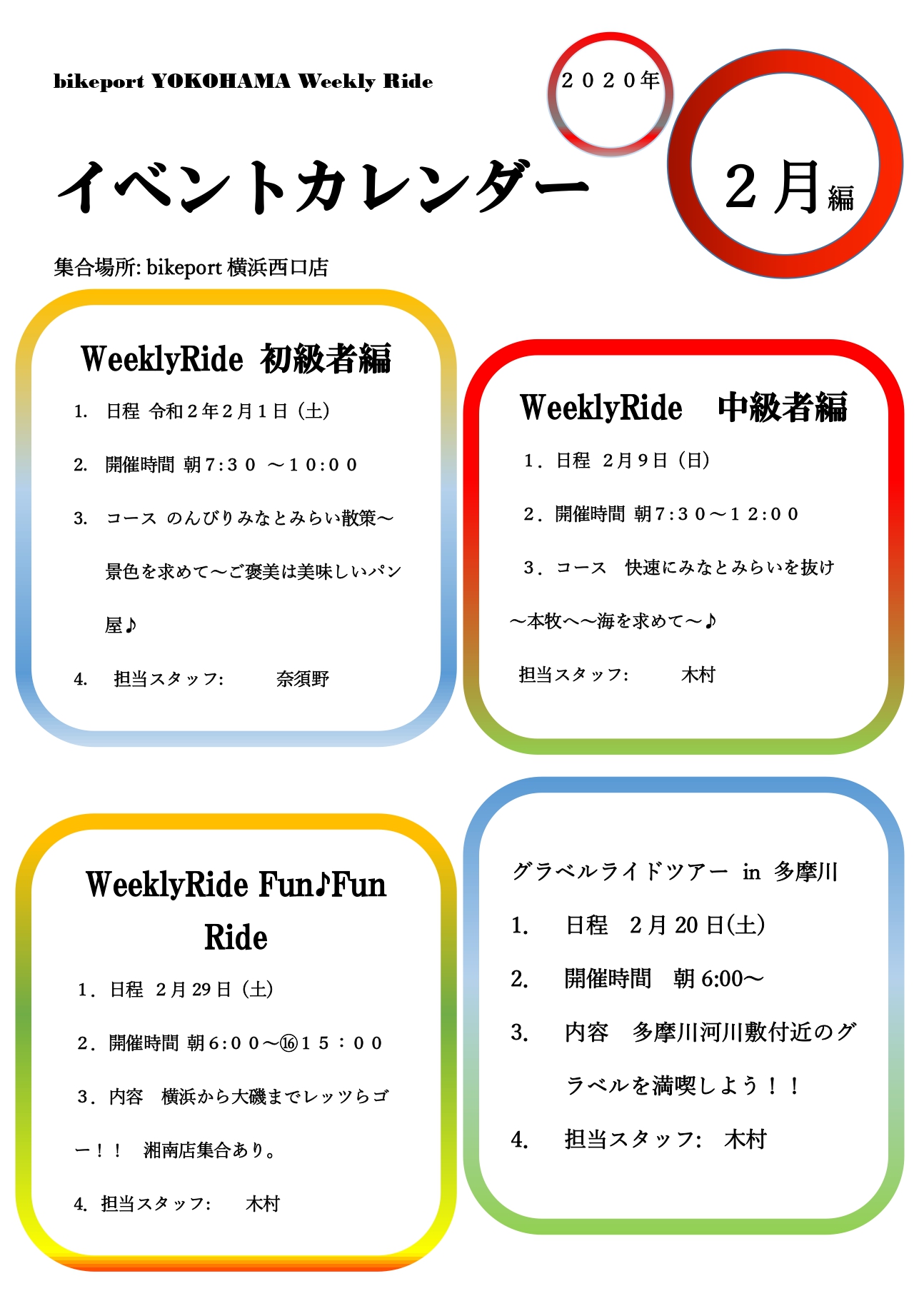 2月9日(日) bikeport横浜西口店WeeklyRide ~中級編~ (難易度★★★☆☆☆☆☆☆☆)