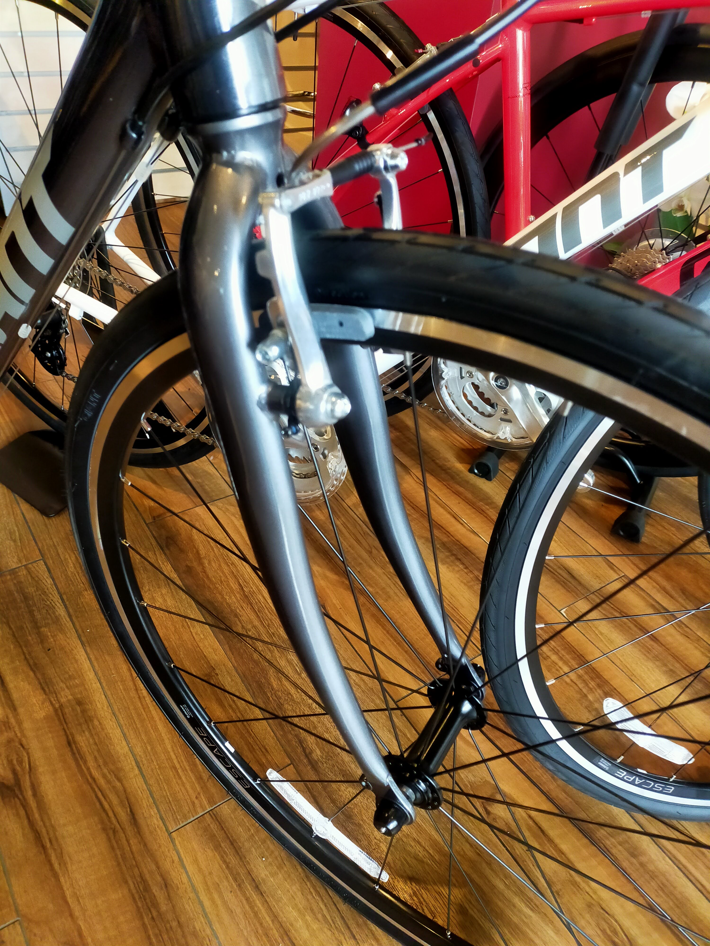 新宿都庁前店 油圧ディスクブレーキ搭載で、雨の日も安心 GIANT ESCAPE R DISC マットダークシルバー ¥61,000(税抜)