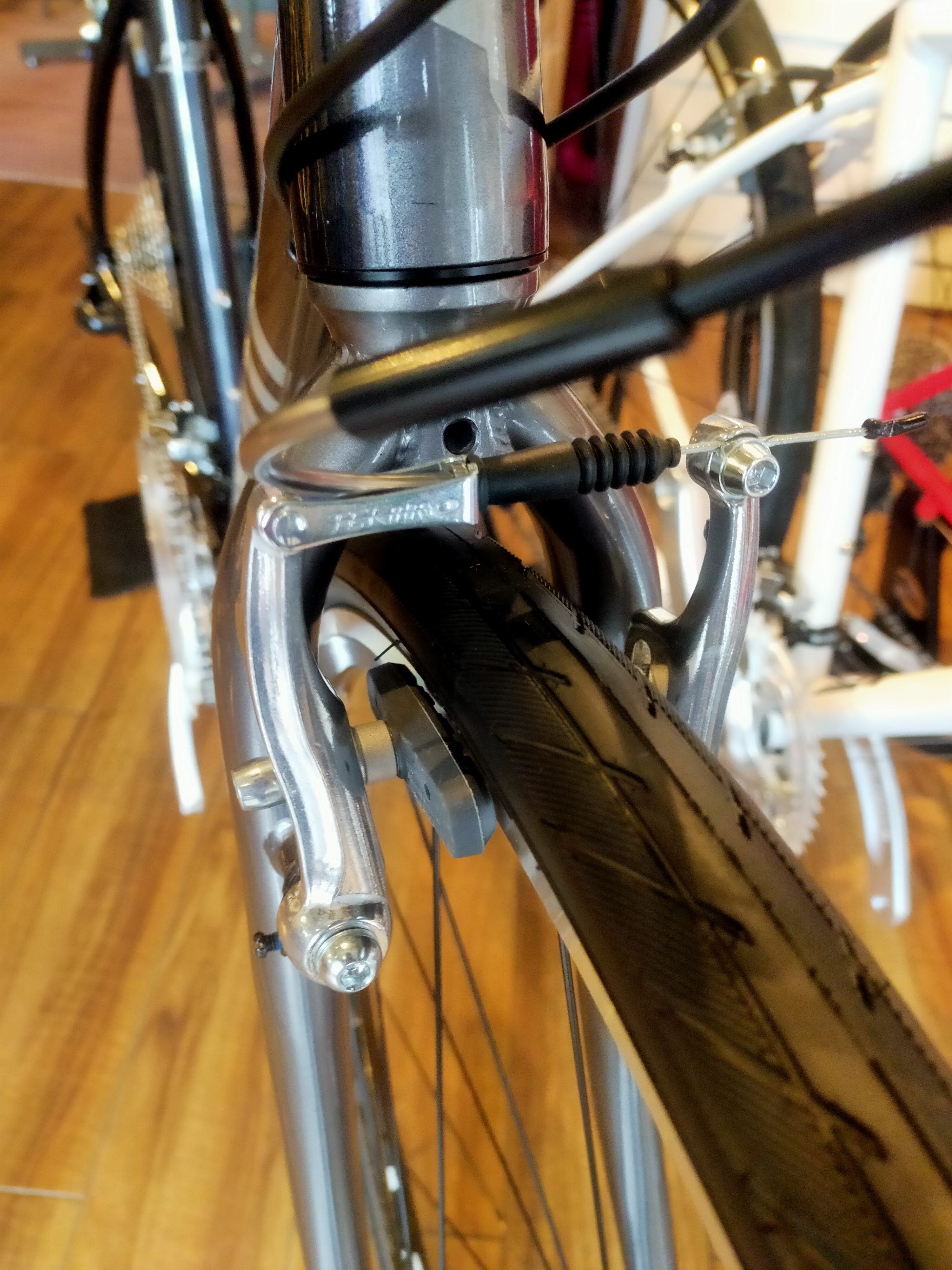 多くのクロスバイクで採用されているVブレーキほどの強力な制動力は街中では無用ともいえ、ミニVブレーキを採用しています。