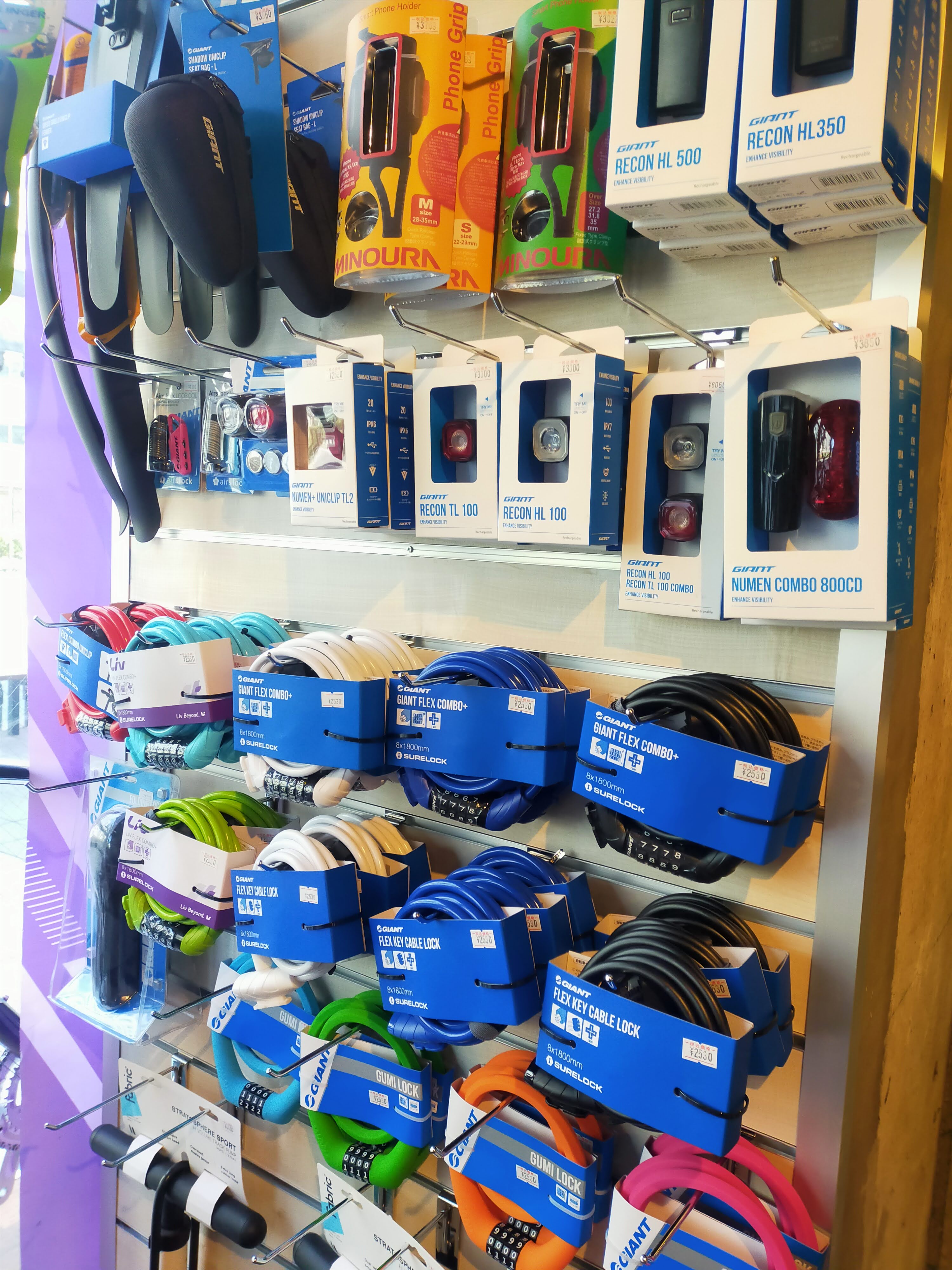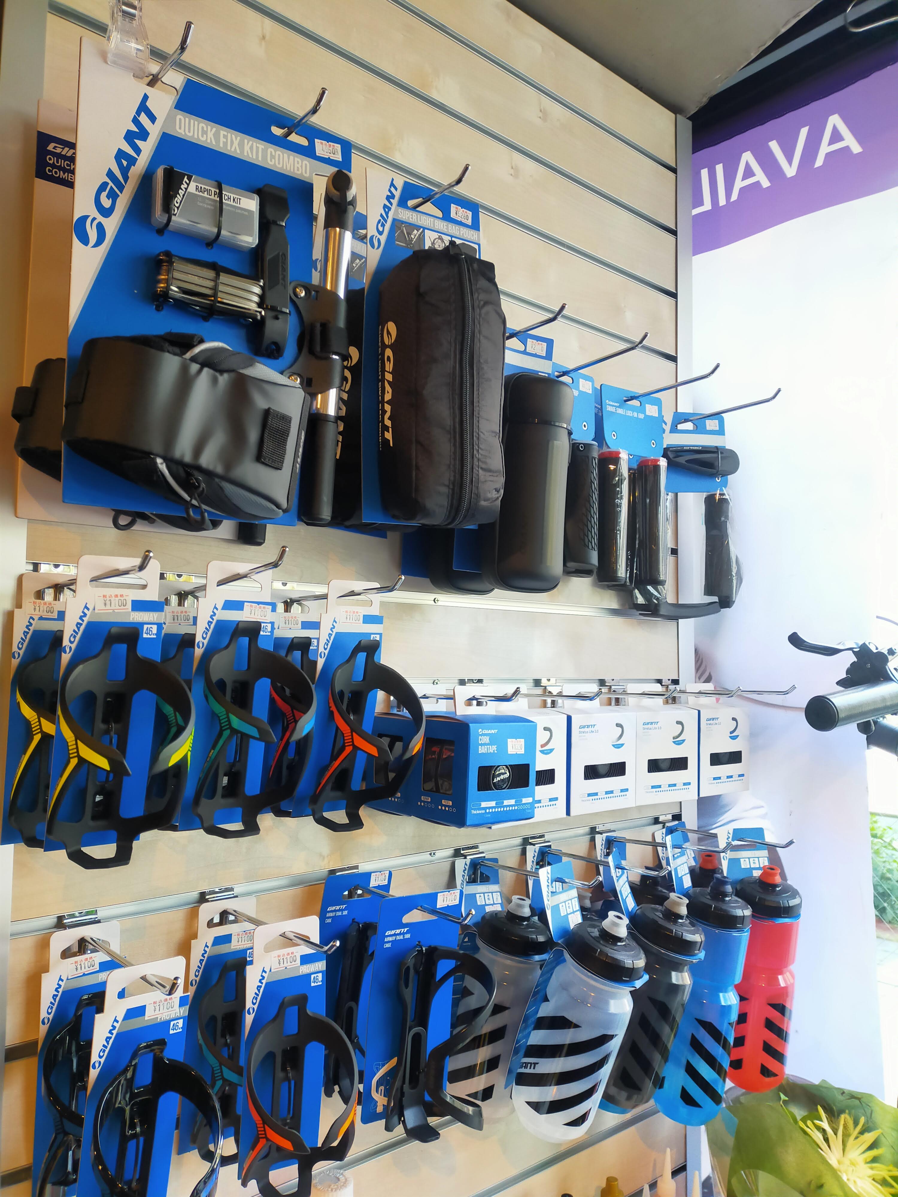 スポーツバイクではおなじみの、ボトルケージから、各種ライト、ロック、フェンダー(泥除け)、はてはウェアまで、揃えることが可能です。