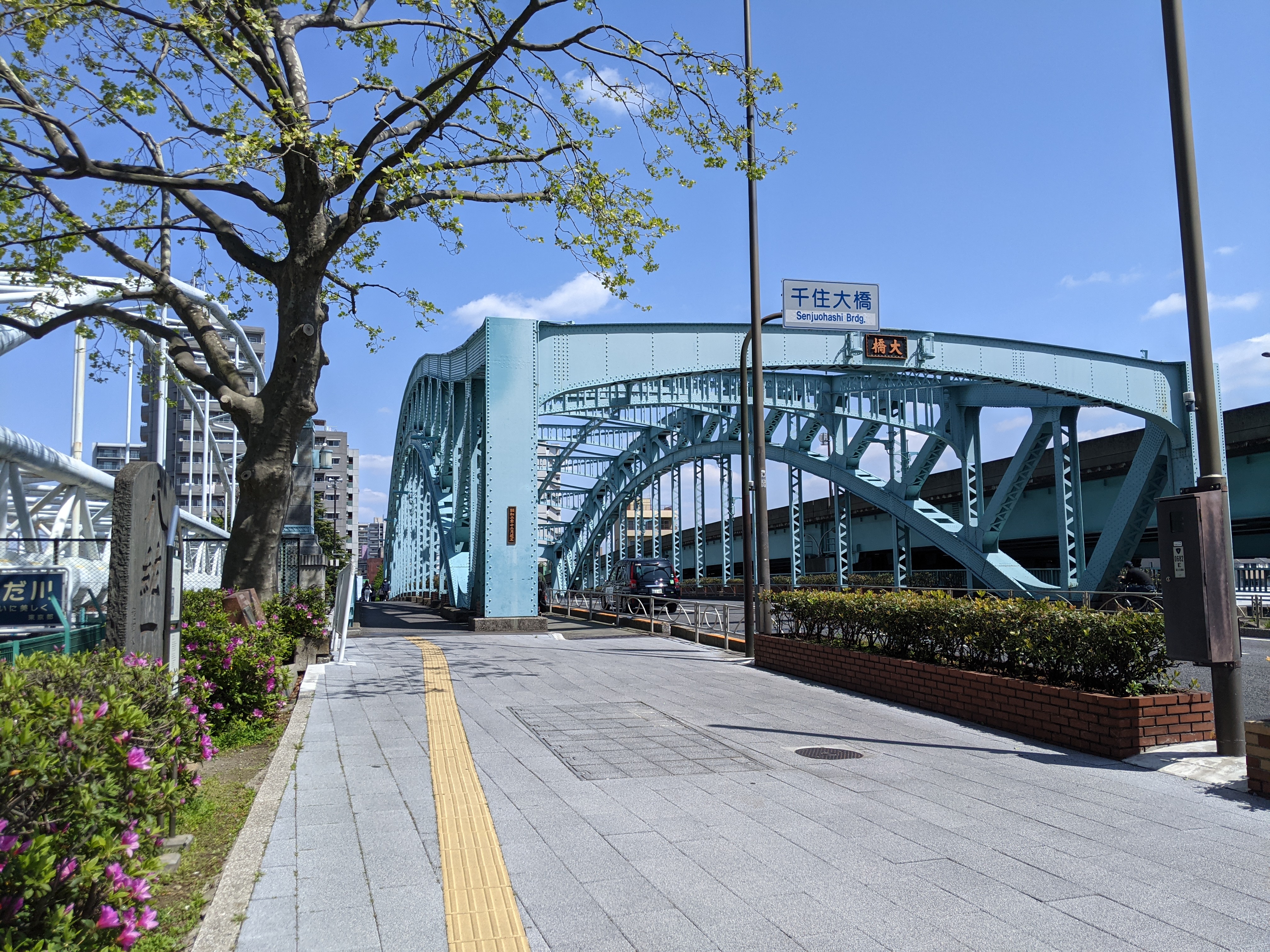 そして突き当たったのが本日1つ目となる隅田川に架かる橋「千住大橋(せんじゅおおはし)」です。