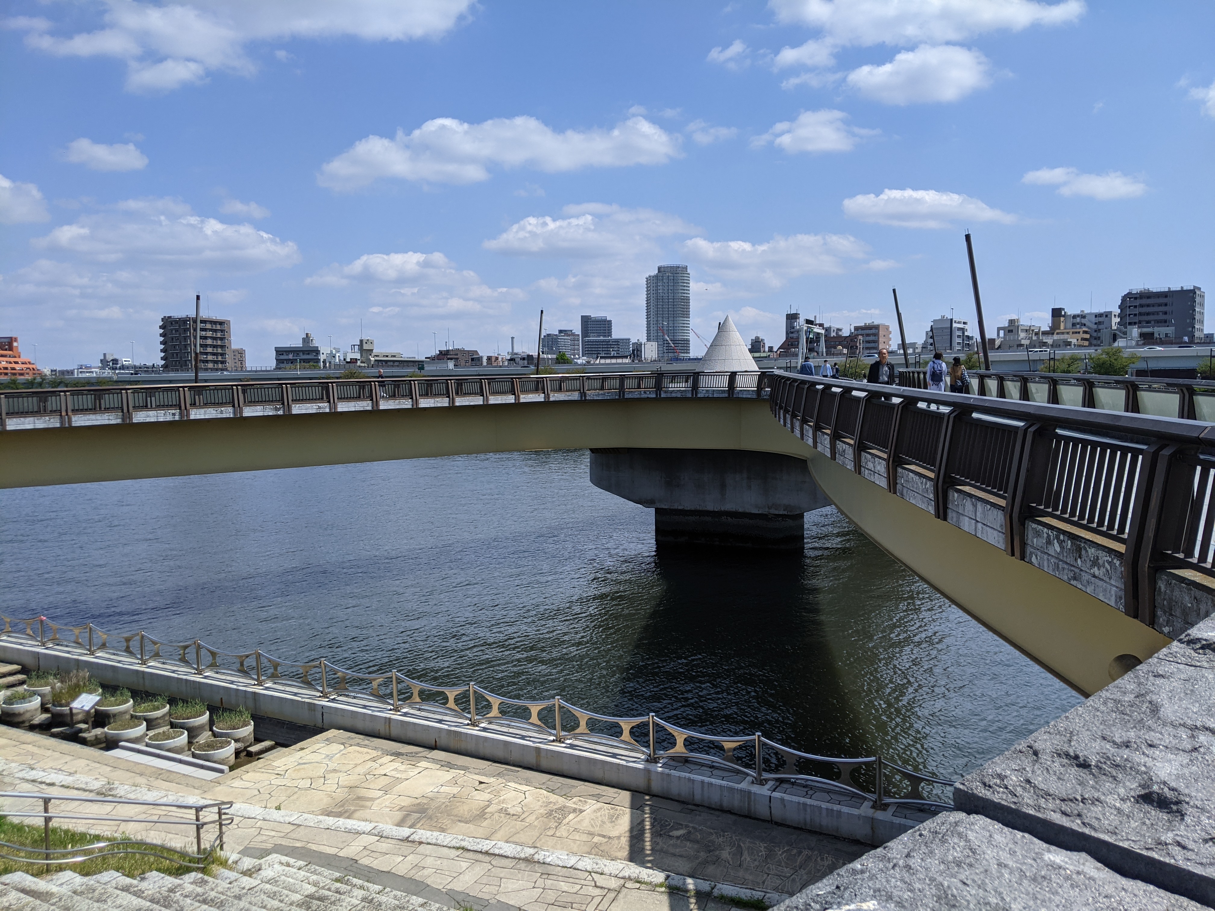こちらは隅田公園内にある「桜橋(さくらばし)」という歩行者、自転車専用橋で世にも珍しい両岸が二股に分かれたX字型の橋になっています!