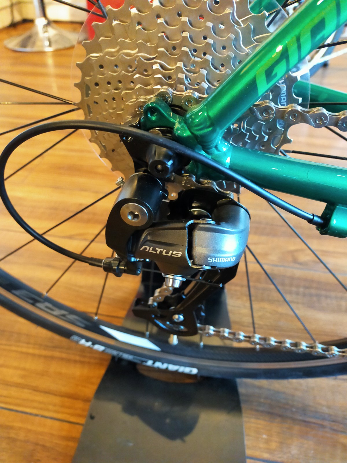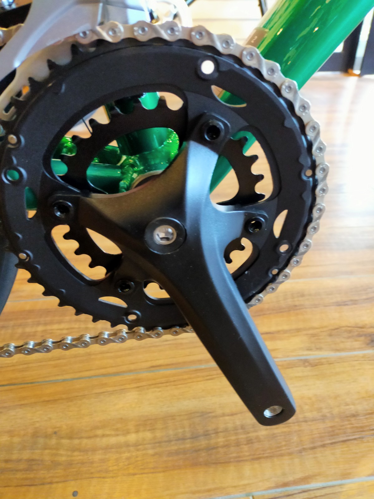 最大フロント46T、リア11T、最小フロント30T、リア34Tと、実に幅広いギア比を搭載しています。