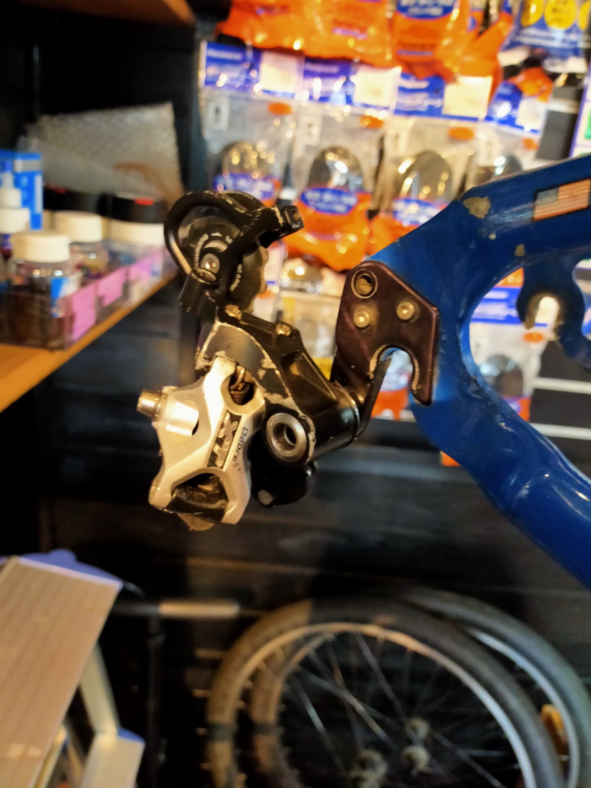 前述しましたように、可能な限り当時のスタイルを再現する、ということで、9速のDEORE XTを装着いたしました。