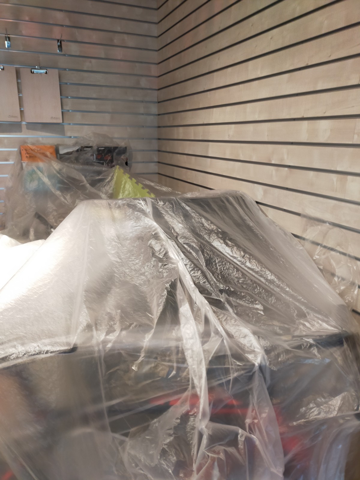 内装工事中ですと、どうしても粉塵が舞うため、商品の搬入ができないのです。