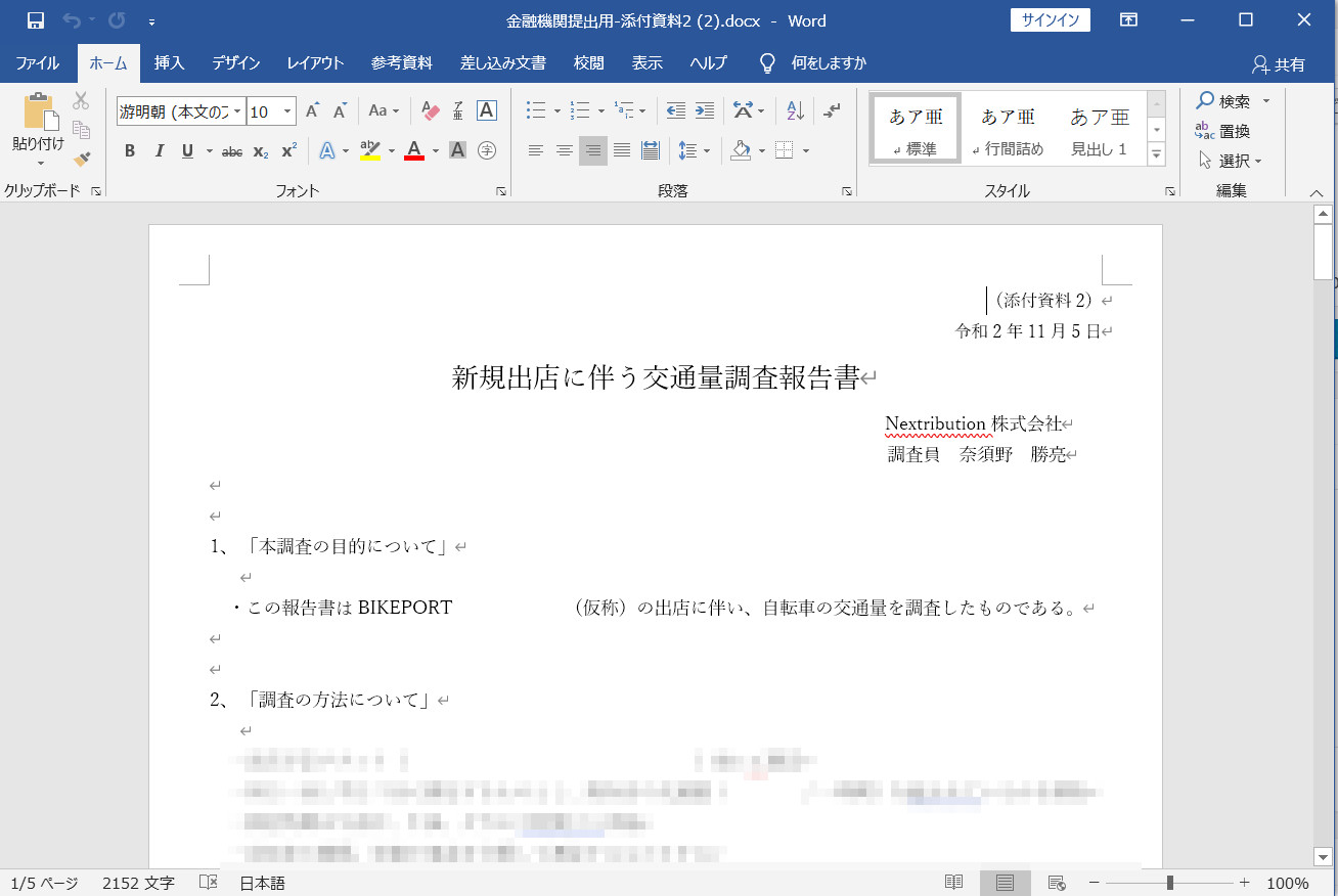 集計したデータを元に、金融機関に提出する文書を作成します。