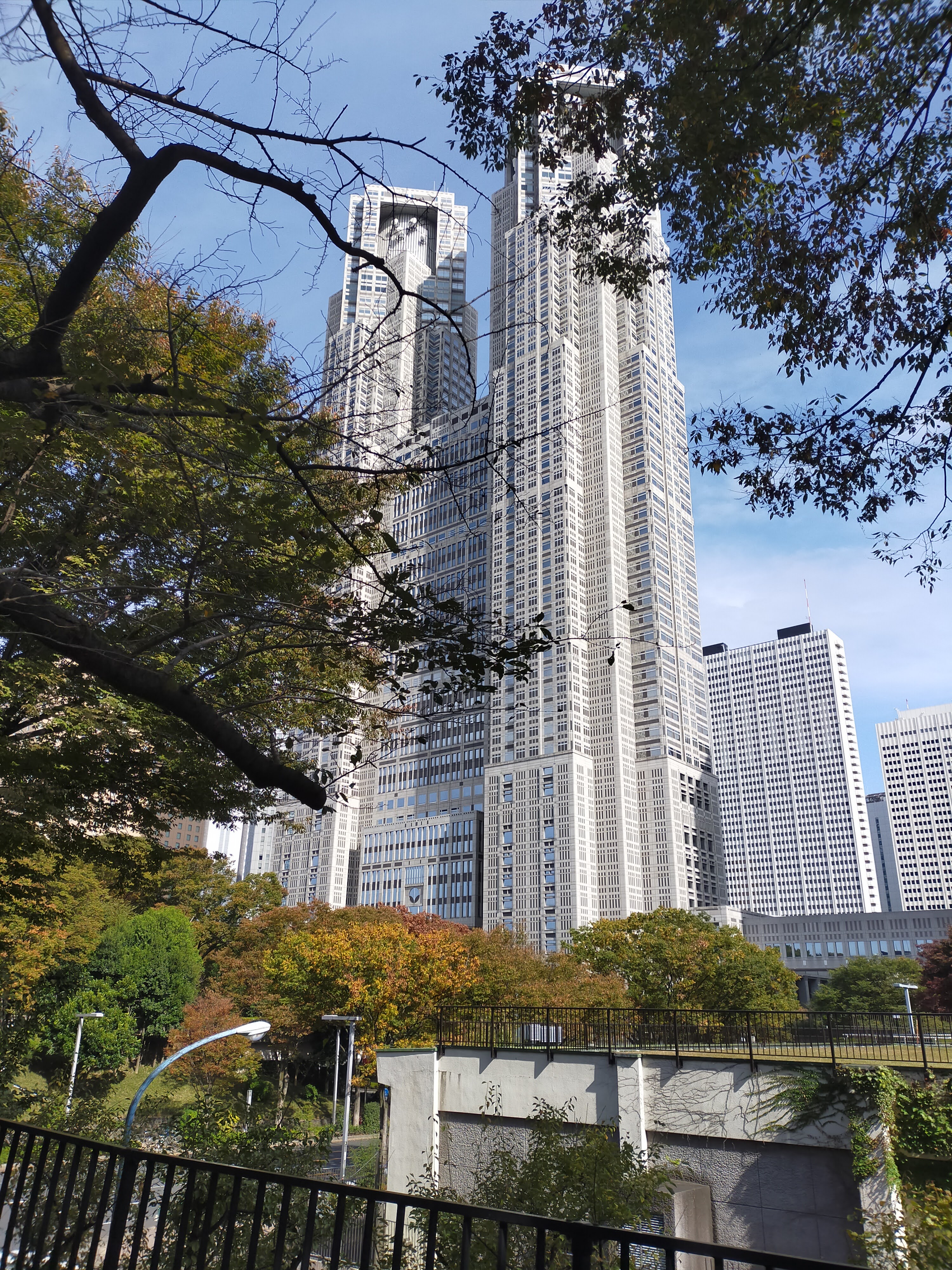 東京都庁が圧倒的なインパクトでそびえ立っています。