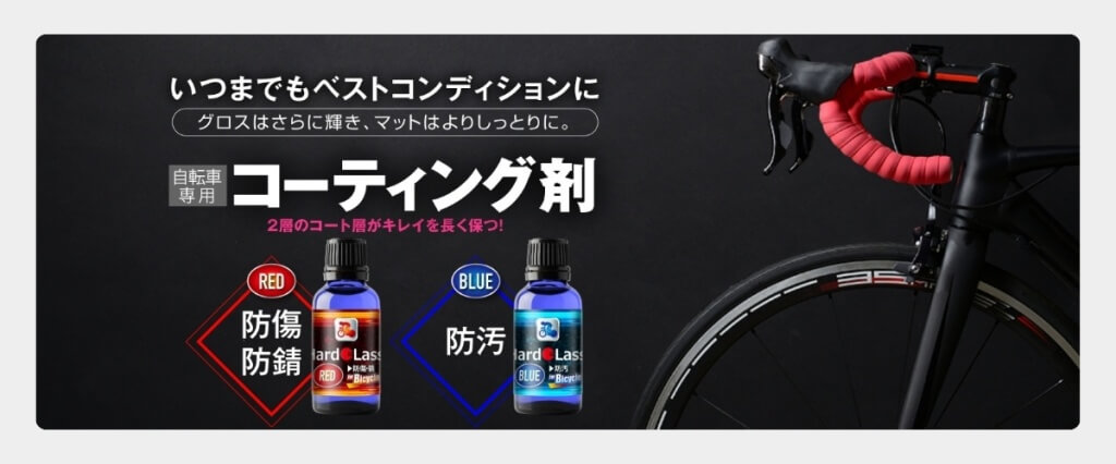 フレームやパーツ表面に透明な高硬度被膜を形成する自転車専用のガラス系コーティング。