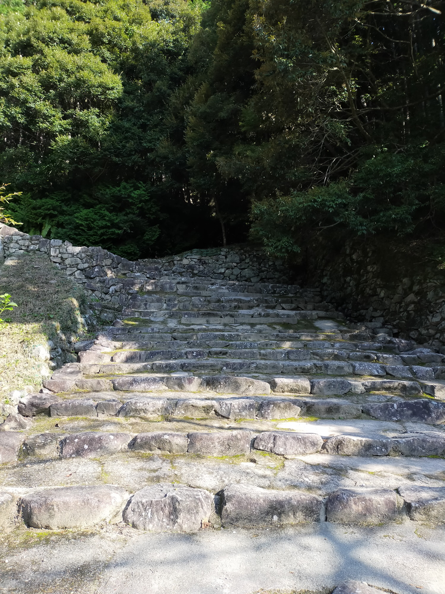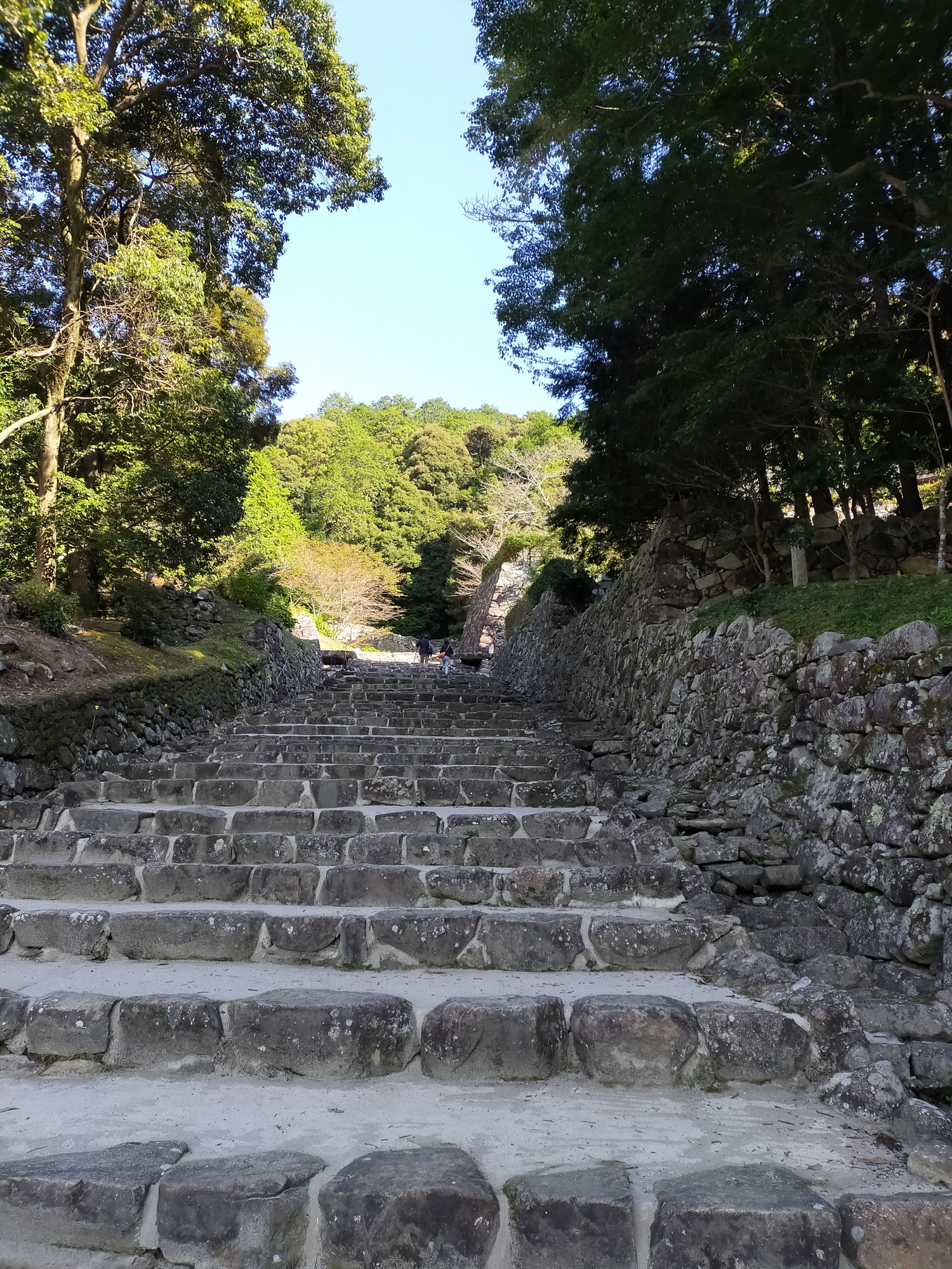 日本国内のお城を津々浦々、拝見した経験があるわけではありませんが、私が見た中で、このように急坂で、かつずどーーーーーーんと真っ直ぐな石段が続くお城というのものは、見たことがありません。