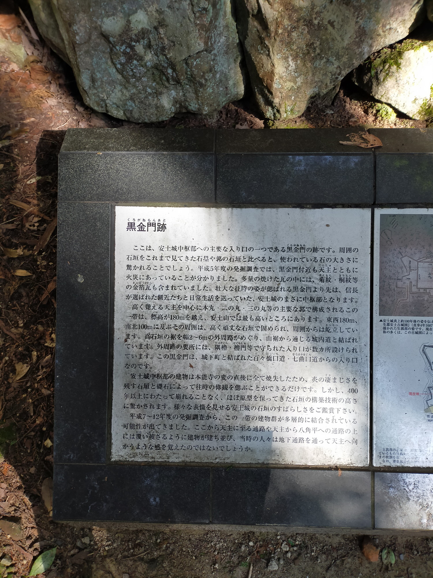 門内に入ることはできませんでしたが、安土城外郭部は24時間公開されておりまして、外郭部を穴が空くほど見学しておりました。