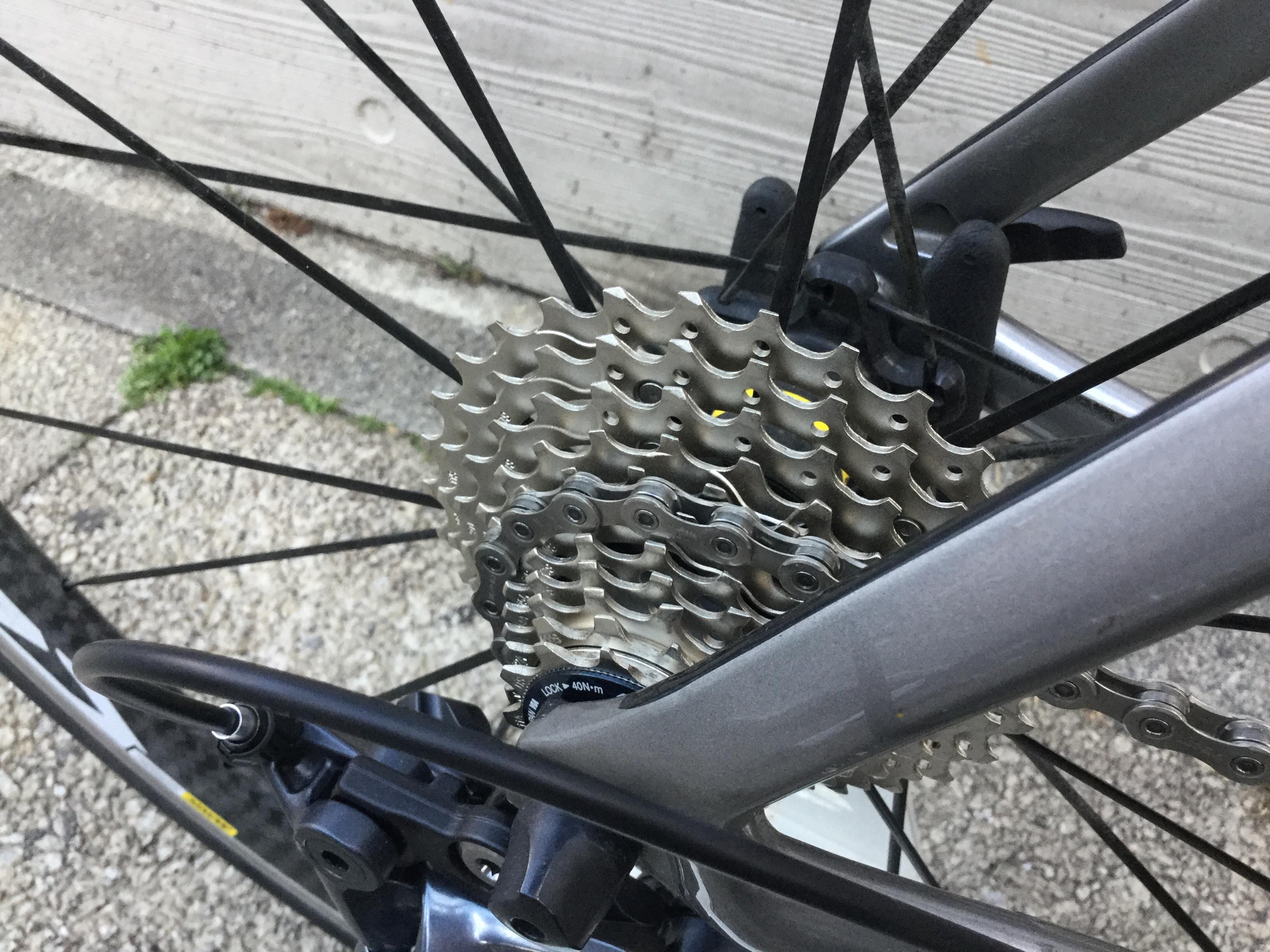 コースによってはリアのギアだけで対応できるので、フロントシングルは軽さを求めるのと同時に変速動作のシンプル化にもつながります。