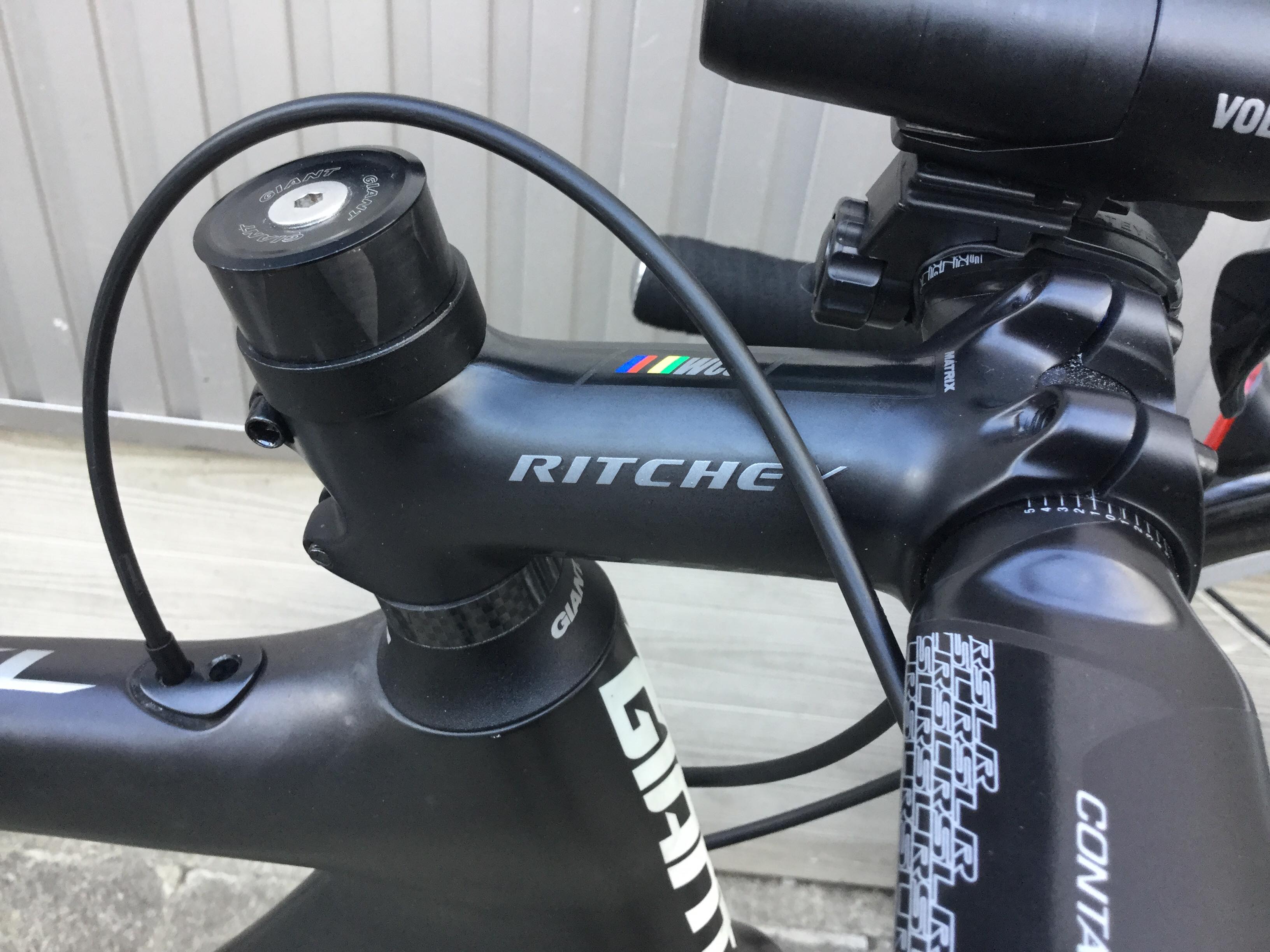 ハンドル周りは高級パーツで!! ハンドルは車体に合わせエアロハンドルを。一体型も考えましたが、汎用性を考慮して別々に。ステムは見た目で選びましたリッチーステム! 軽量ステムでも剛性と強度を求めたC220は、シクロクロスなどでも使用する選手がいるため非常にオススメです。本当はリッチーで揃えたいと話していたのですが、エアロハンドルが無かったのです…苦笑