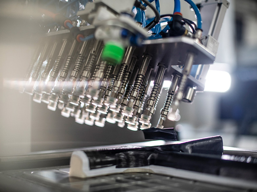 これまで手作業で行われていたカーボンシートの貼り付けはロボットアームで、同様に正確に貼り付けられている。