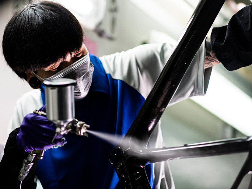 そこでGIANTはカーボン工場に多額の投資をして カーボンシートをカットする際に寸分の狂いがないようにレーザーカットを採用しました。 さらにカーボン紙の貼り付けも個体差がないように、ロボットアームを採用したことにより、最上位のSLグレードでは100g近く軽量化していて、剛性も向上しているのです。