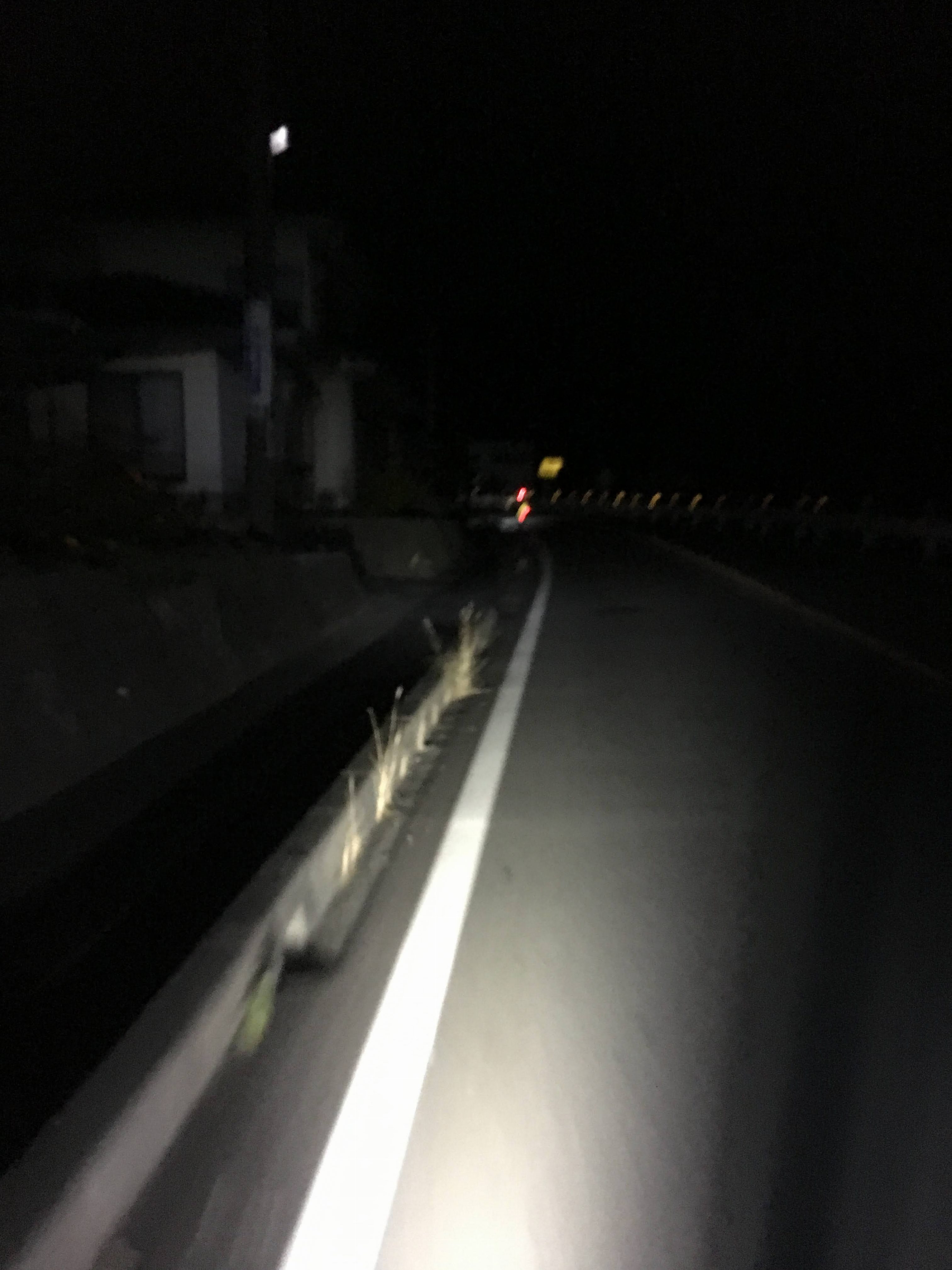 自転車に装着してあるライトだけが唯一の光源となりました。