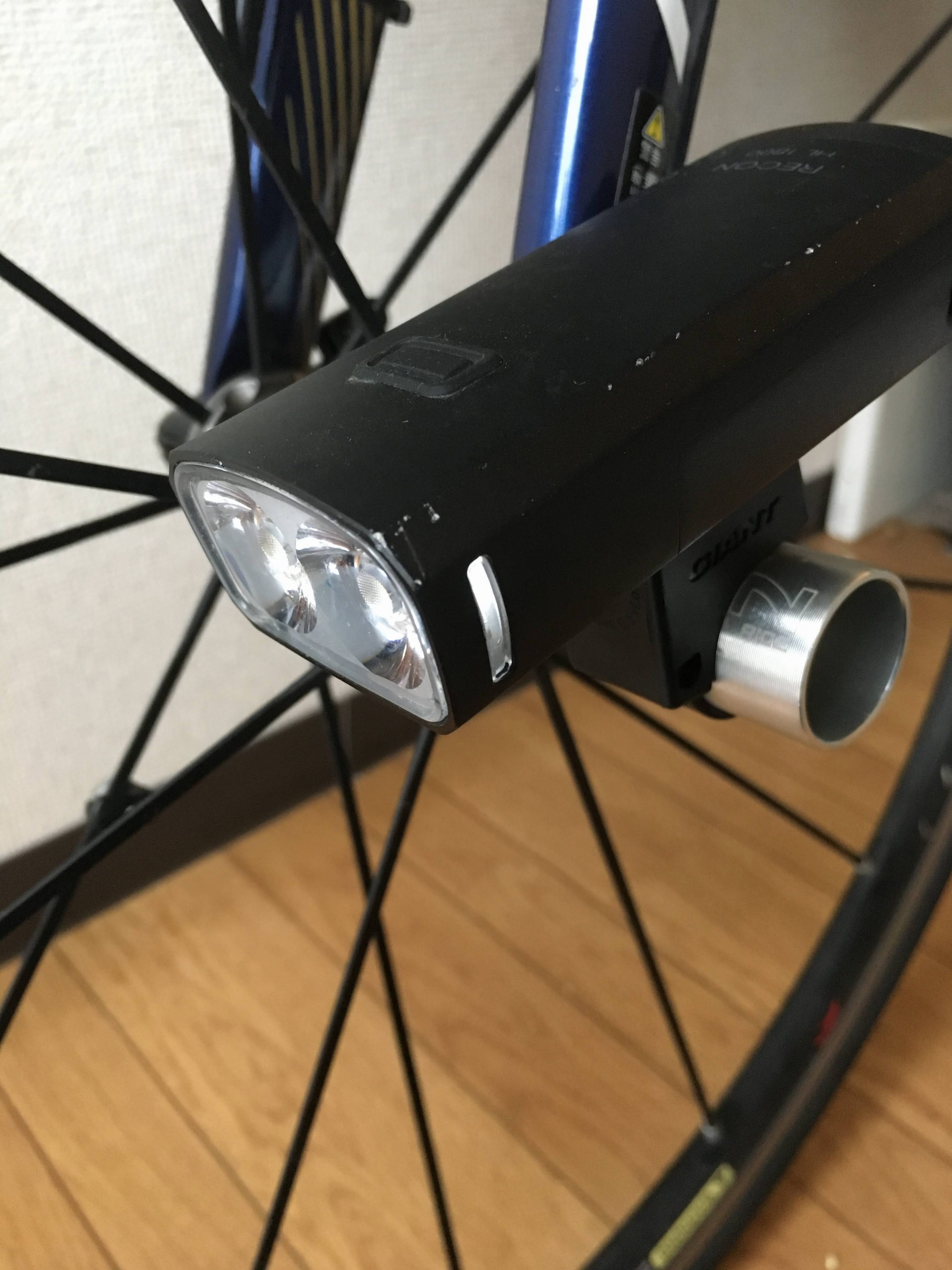 また、今回のブルベでは、フロントバッグを装着していたため、ハンドル周りが手狭なこと、仮にハンドルにライトを着けたとしても、バッグによって下方が影になってしまうことから、ライトはホイールのハブに装着いたしました。
