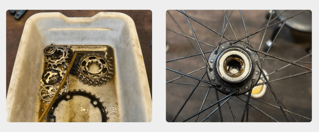 - ▶ ドライブトレイン(クランク・チェーンリング・スプロケット)の分解洗浄