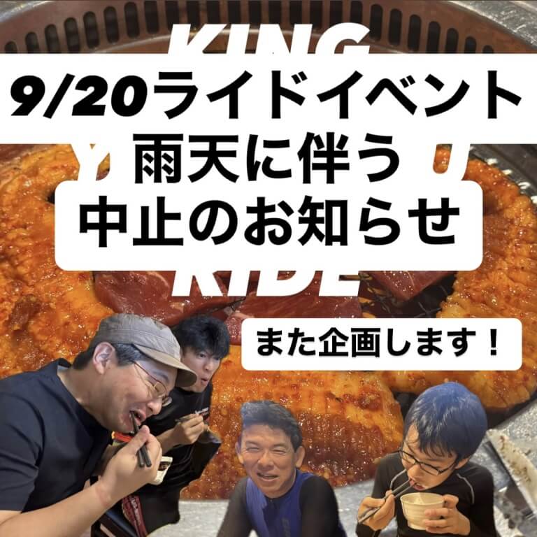 日程変更のお知らせ!!9月20日(土) RIDE YAKINIK…