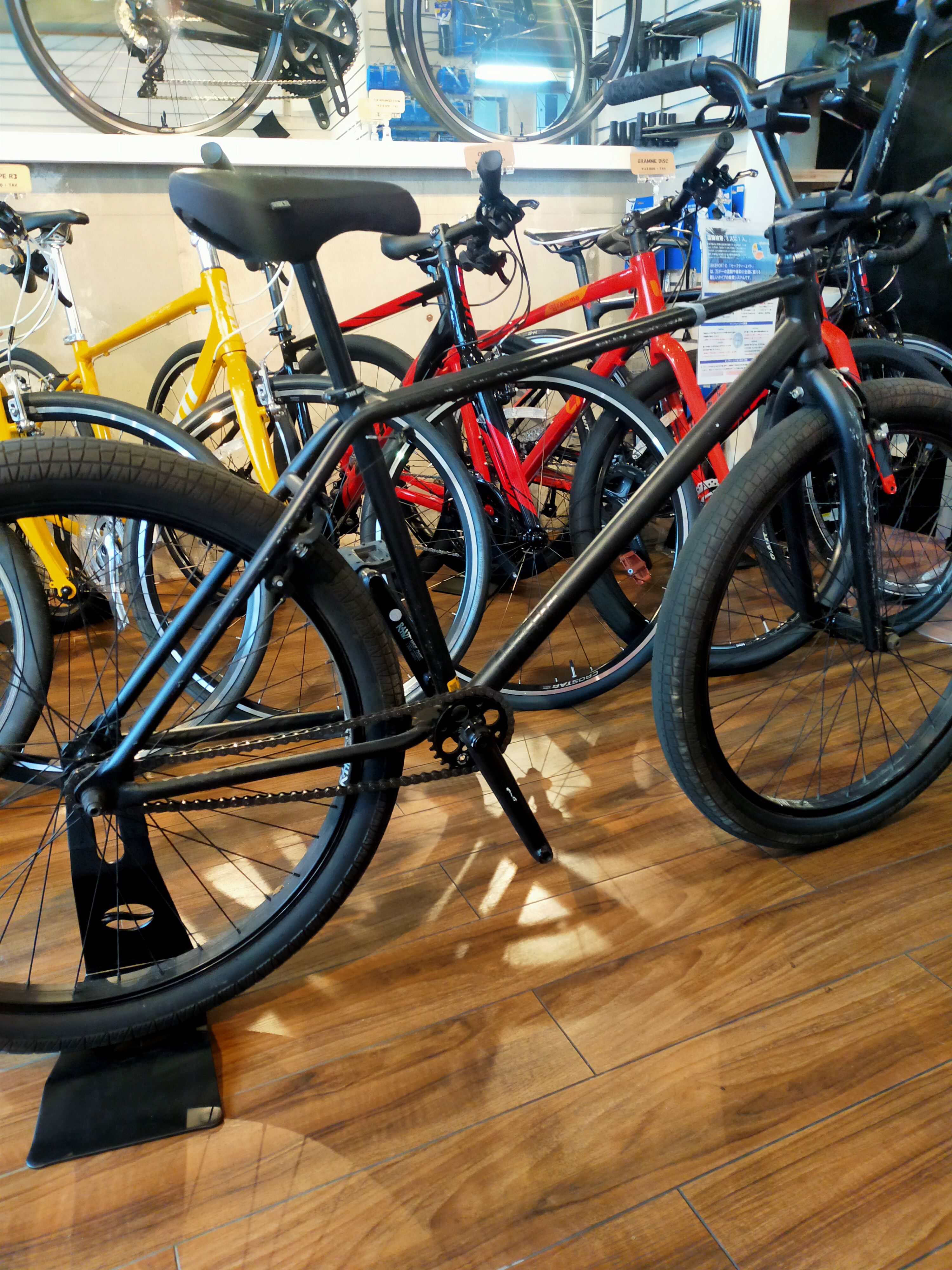 使われているパーツはBMXと同じながらも、巨大なバイクで(ご依頼者様も190cmくらいはおありの、巨漢の方でした)、日本市場ではほとんど見受けられません。