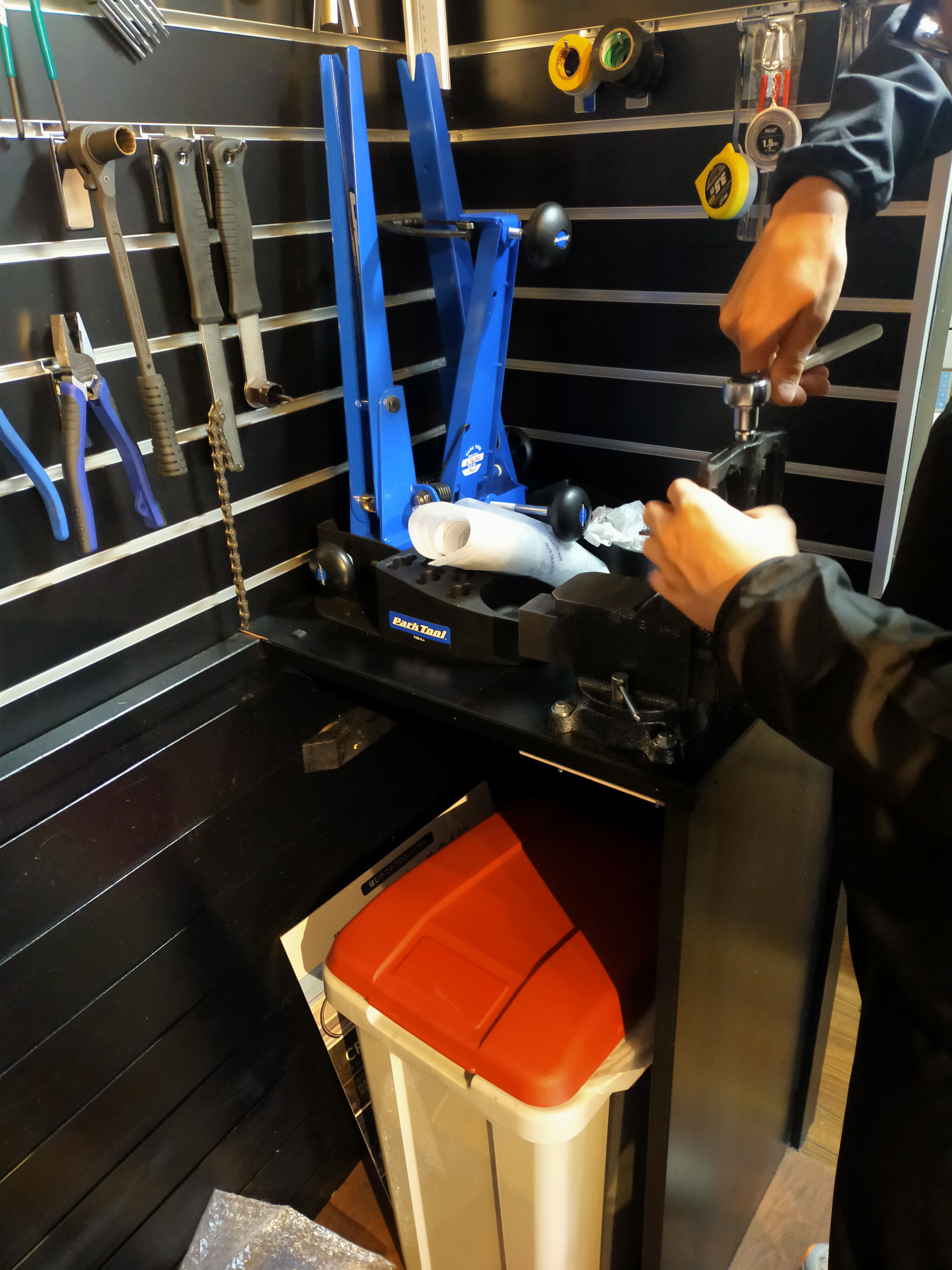 新宿店は土地柄なのか、外国人のお客様が多数いらっしゃいまして、このモデルも右ブレーキと左ブレーキが日本仕様とは逆です。