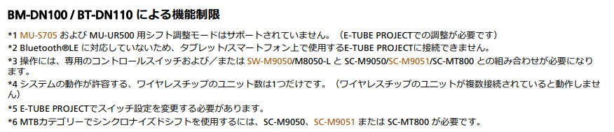 バッテリーの種類によってシンクロシフトに対応していなかったり、ワイヤレスユニットの種類によっては、モバイル版E-tubeとペアリングできなかったりといったところです。