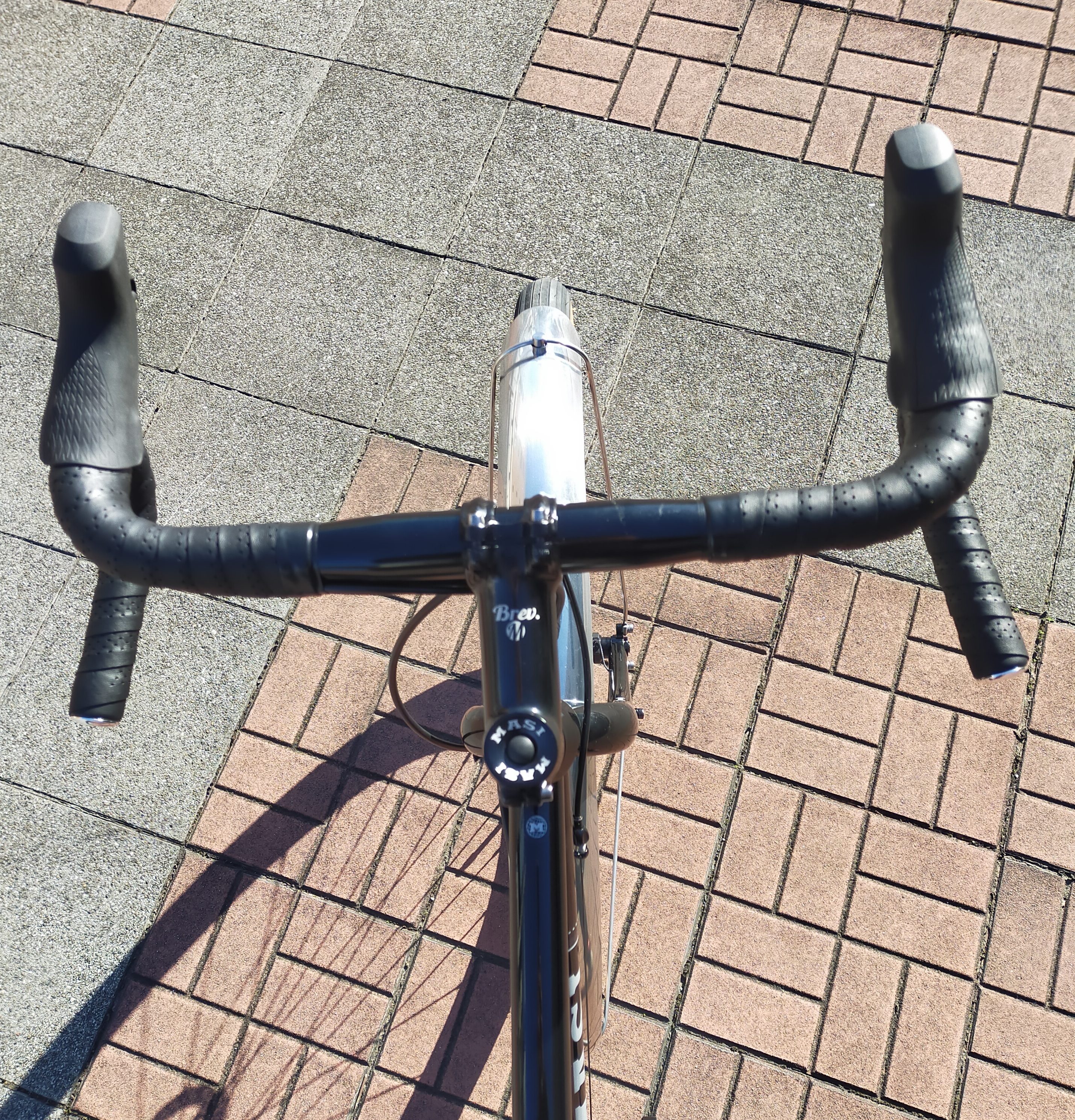 最近流行の、グラベル系バイクで採用されている、フレアハンドルです。