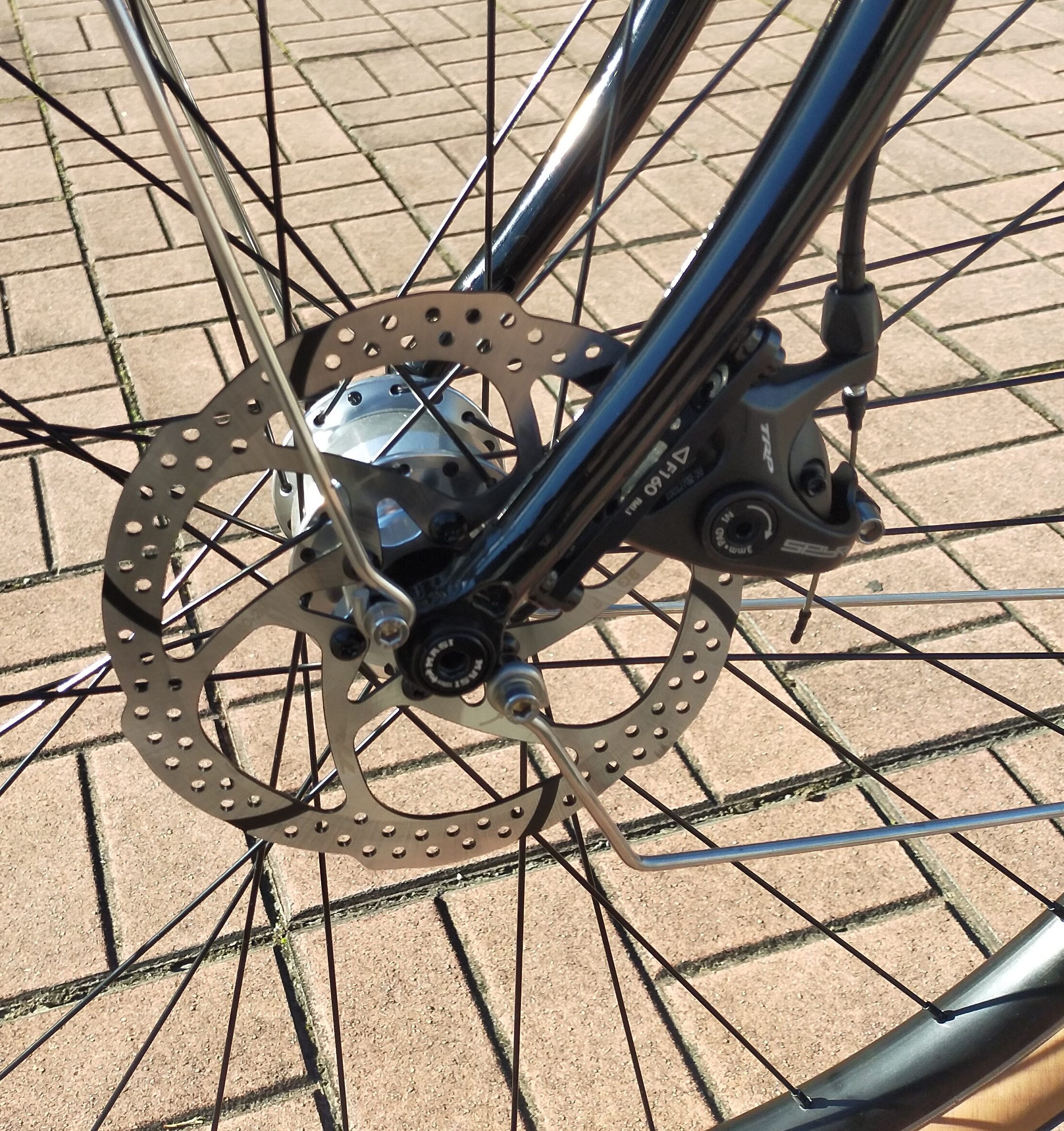 ディスクブレーキ採用による利点は、ホイールの外周部付近で制動する従来のリムブレーキと比べて、制動面が路面から離れているため、雨や汚れによる影響を受けにくいことです。