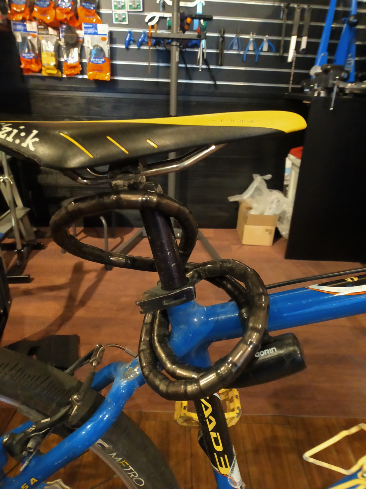 オーナー様のお好みのセッテング、位置などがありますから、サドルの高さについてはテープを貼付して、記録します。