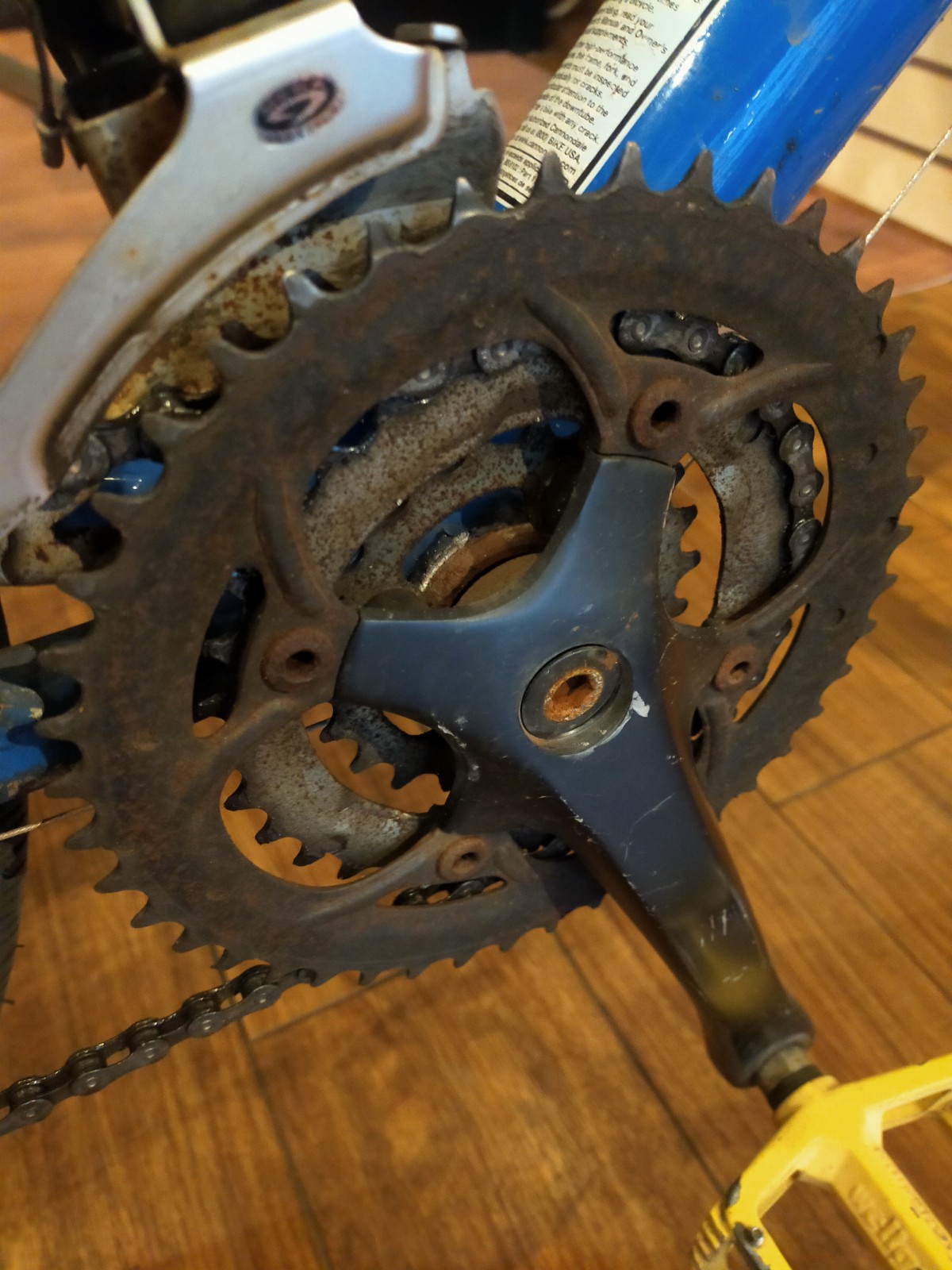 チェーンリング、クランクはかなりダメージが進んでいます。